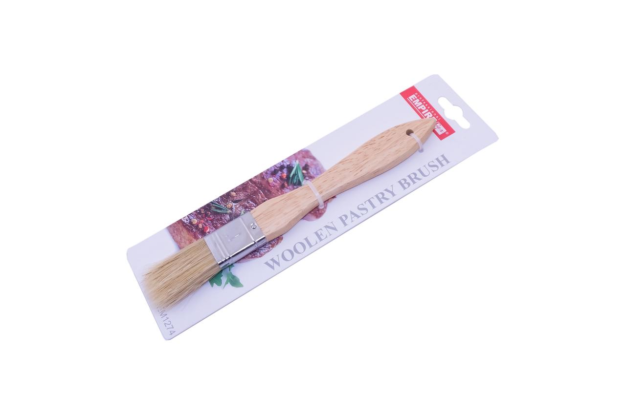 Кухонна натуральна кисть Empire 200 мм призначена для нанесення рідких спецій на що готуються страви - мастило м'ясних гарнірів, форм для випічки, а також хлібобулочних виробів. Довжина пензлика становить 200 мм, а щетина представлена у вигляді натурального ворсу. Кріплення щетини забезпечується за рахунок металевої оправи. Маючи на кухні таку щітку, кулінарні шедеври господині будуть виглядати ще більш апетитно.