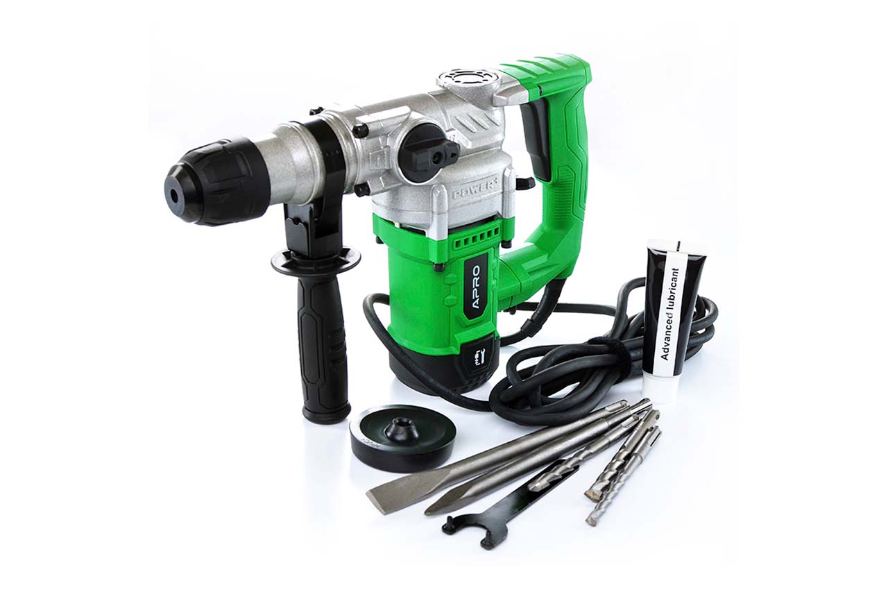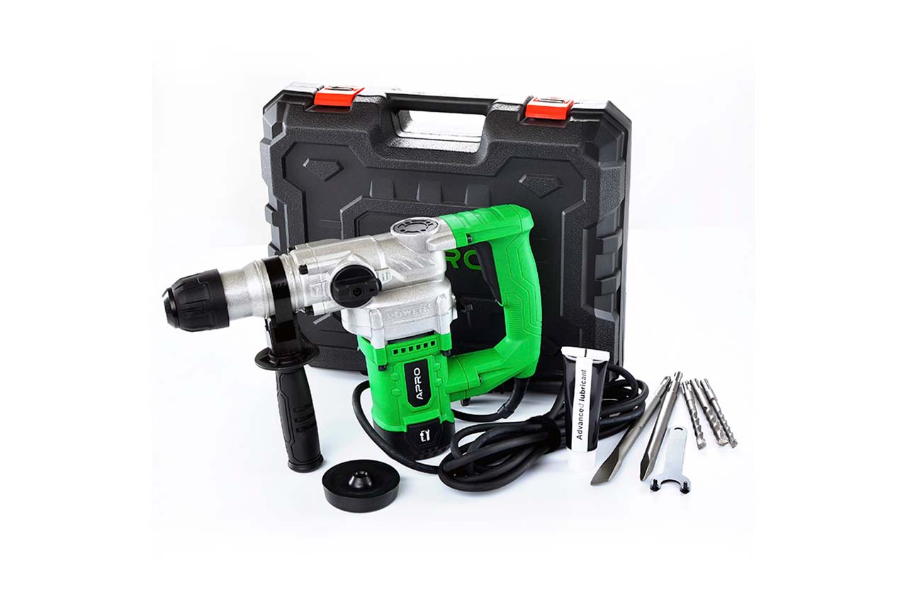 Перфоратор Apro - 1500H надійний інструмент, який ефективний при бурінні жорстких матеріалів, таких як бетон, камінь та цегла. Має енергію удару в 7,5 Дж, що допомагає йому впоратися із завданням будь-якої складності. Оснащений реверсом, що дозволяє однаково ефективно працювати в обох напрямках. Перфоратор йде в комплекті з кейсом, завдяки якому Ваш інструмент завжди перебуватиме в належному стані та надійно захищений від зовнішнього впливу. Крім того, у комплекті Ви можете знайти: обмежувач глибини свердління; передня допоміжна рукоятка; sds+ бури на 8, 10, 12*150 мм (для забезпечення надійної фіксації); піки та долото. Перфоратор оснащений захисною муфтою, яка дозволяє захиститися від травм у разі, якщо оснастка дасть збій і почне клинити. Таким чином, робота стає безпечнішою. Також корпус інструменту має в асортименті кнопку блокування увімкнення, що виключає можливість випадкового натискання кнопки спуску.