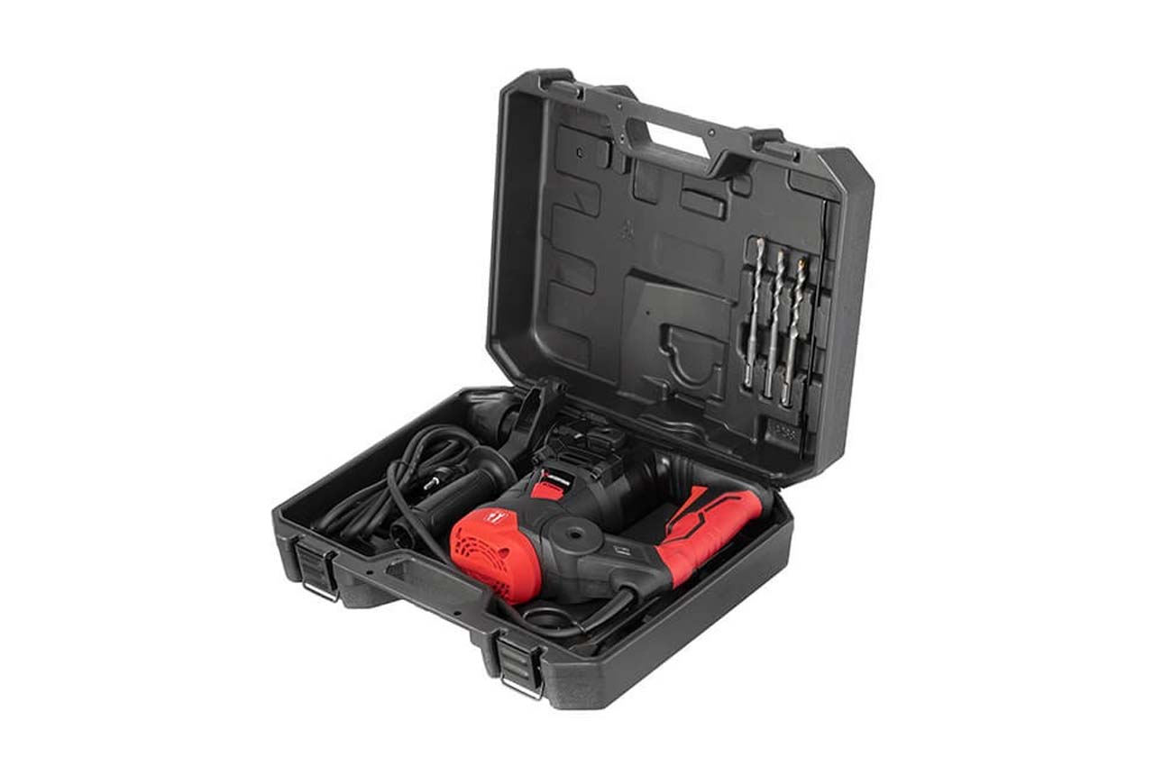 Хороший перфоратор - незамінна річ під час будівництва, ремонту, стати в нагоді також в домашньому використанні. Ця модель перфоратора з системою кріплення бурів SDS-Plus має вертикальне розташування двигуна і забезпечує високо руйнівні роботи, а також витримує значні навантаження. Редуктор і ударний механізм перфоратора розміщений в алюмінієвому корпусі, це покращує охолодження, підвищує міцність і збільшує термін служби інструменту. Також в ручці реалізована система виброгашения, яка полегшує роботу оператора в безліч разів! Потужний електродвигун 1500 Вт дозволяє працювати з твердими матеріалами, такими як: бетон, цегла, камінь. Частота ударів - 4500 уд / хв, максимальна енергія 6 Дж, з легкістю руйнує цегельну кладку, вдарить штукатурку, руйнувати стіни, стелю, підлогу та ін. Три режиму роботи Свердління Свердління з ударом Удар В режимі свердління перфоратор розвиває 850 об / хв і проробляє отвори в сталі - 13 мм, в бетоні - 32 мм, а також в дереві - 40 мм. Перфоратор оснащений додатковою бічною рукояткою призначеної для перехоплення інструменту в роботі. Вам не потрібно утримувати інструмент в місці вентиляційних отворів, що сприяє правильному охолодженню електродвигуна. Особливості Потужний і продуктивний Віброгасильними рукоятка Плавний пуск Металевий корпус редуктора Висока якість деталей і збірки Комплектація Перфоратор Бічна рукоятка Глубиномер Пильник Бур (8,10,12 мм), зубило плоске і пікоподібне Ємність з мастильним речовиною Інструкція Гарантійний талон укомплектовано в надійний кейс з металевими замками і зручною ручкою для транспортування. Частота мережі: 50 Гц; Число оборотів холостого ходу: 0-850 об / хв; Довжина мережевого шнура: 2 м; Напруга живлення: 230 В; Потужність: 1500 Вт; Частота удару 4500 уд / хв; Кількість режимів: 3; Тип патрона: SDS-Plus; Максимальний діаметр свердління: сталь 13 ммбетон: 32 ммдерево: 40 мм мм; Енергія удару: 6 Дж