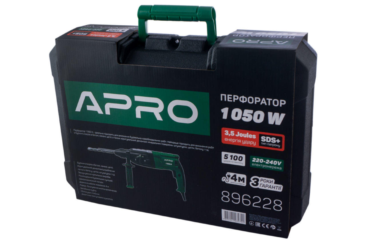 Перфоратор має силу удару 2,8 Джоулі та тип патрона SDS+. Працюючи від електромережі в 220 - 240 V, інструмент досягає 4850 ударів за хвилину і робить 1000 оборотів за хвилину. Максимальна потужність інструменту складає 850 Вт.