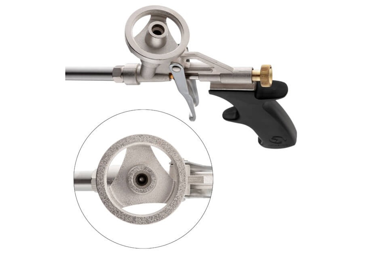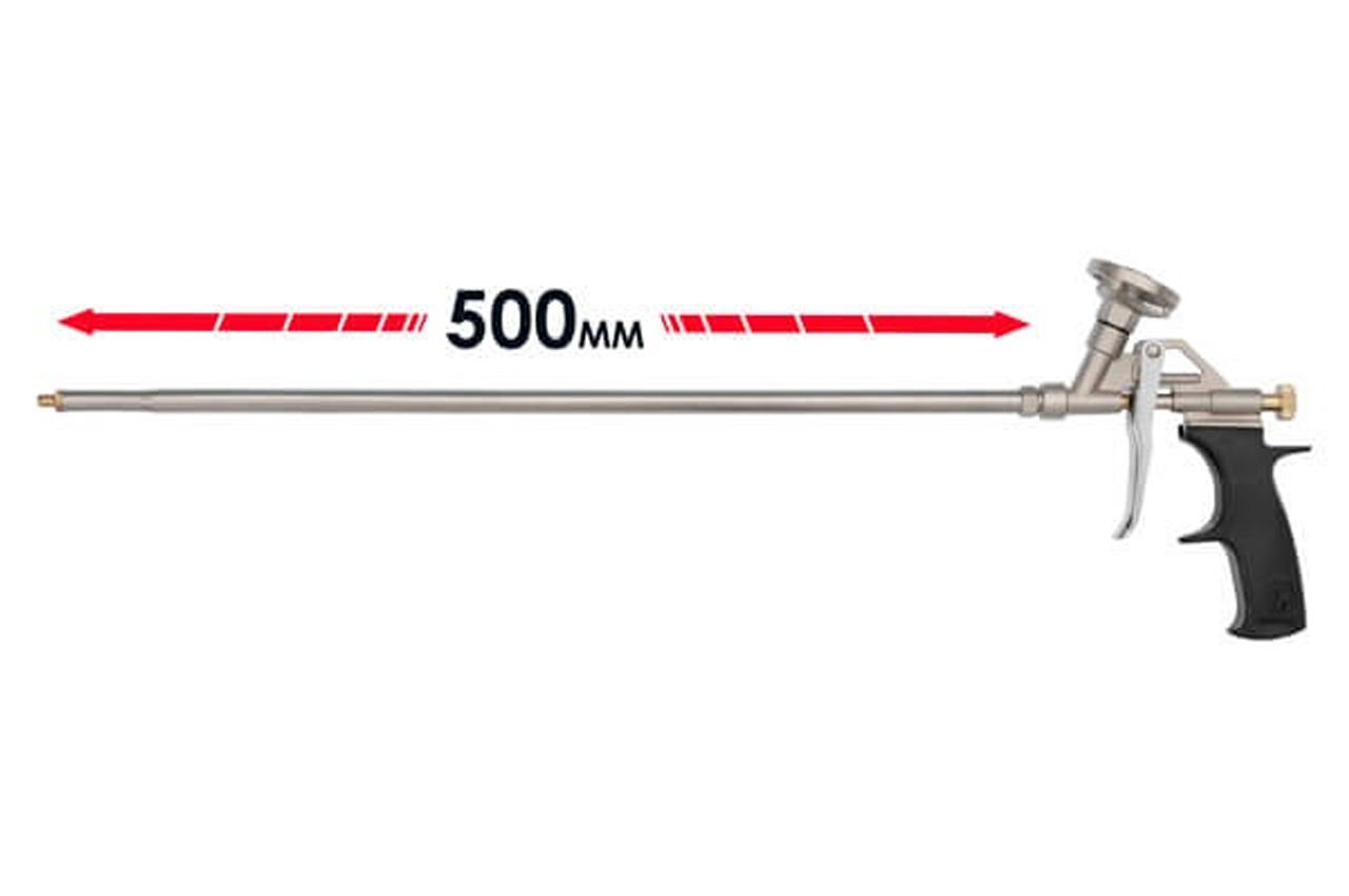 Унікальний пістолет з довжиною трубки подачі - 500 мм, забезпечить точну доставку піни максимально глибоко в важкодоступні місця, без використання додаткових насадок. Перевага довгою трубки подачі пістолета для піни перед змінними і додатковими насадками, які часто використовують монтажники, обумовлено можливістю точної і економічної доставкою матеріалу в важкодоступні місця зі збереженням властивості піни. Також зберігається правильна пористого, щільність застиглої піни, процес розширення піни прогнозований і контрольований, як первинний, так і вторинний. Монтажна піна, клей-піна подана безпосередньо з пістолета і та ж піна, подана з пістолета через додатковий подовжує наконечник має абсолютно різну структуру. З використанням додаткових наконечників подача стає менш рівномірною, а піна більш пухкою. Первинне розширення перевантажено повітрям і не властиво складу використовуваної монтажної піни. Крім усього іншого витрата піни більше. Піна, подана через подовжують насадки, має непрогнозований вторинне розширення і пухку структуру застиглого матеріалу. Пістолет для монтажної піни PT-0650 вирішує всі вищевказані проблеми. Довгий наконечник 500 мм доставляє піну глибше, ніж інші пістолети без зміни структури піни, і дозволяє точно відрегулювати подачу матеріалу, що забезпечує точне дозування і економить витрату матеріалу. Голка і трубка виготовлені з нержавіючої сталі і не схильні до корозії. Надійний запірний клапан не змусить вас турбуватися про вихід піни з пістолета при зміні балона, а також забезпечує герметичність при зберіганні пістолета. Латунний наконечник гарантує герметичність голки, навіть при дуже тривалій експлуатації пістолета. Металевий курок абсолютно не схильний до зносу. Литий алюмінієвий корпус легкий і надійний. Чи не втомлює руки і не дає шансів для витоку піни, стійкий до механічних пошкоджень. Чотири додаткових наконечника в комплекті забезпечують подачу піни в важкодоступні місця і специфічне застосування пістолета. Гарантована безперебійна експлуатація протягом максимально тривалого періоду часу в будь-якому діапазоні температур навколишнього середовища, а також в умовах високої вологості, при виконанні монтажних робіт будь-якої складності. Кількість насадок: 4 од. Чотири додаткових наконечника в комплекті забезпечують подачу піни в важкодоступні місця і специфічне застосування пістолета. Гарантована безперебійна експлуатація протягом максимально тривалого періоду часу в будь-якому діапазоні температур навколишнього середовища, а також в умовах високої вологості, при виконанні монтажних робіт будь-якої складності. Кількість насадок: 4 од. Чотири додаткових наконечника в комплекті забезпечують подачу піни в важкодоступні місця і специфічне застосування пістолета. Гарантована безперебійна експлуатація протягом максимально тривалого періоду часу в будь-якому діапазоні температур навколишнього середовища, а також в умовах високої вологості, при виконанні монтажних робіт будь-якої складності. Кількість насадок: 4 од.