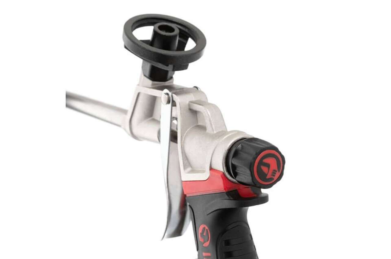 Пістолет розроблений спеціально для тривалої експлуатації професіоналами, які цінують якість, надійність і максимально довгий термін служби інструменту. Тримач балона покритий тефлоном - застигла піна не прилипає і не забиває держатель. Збільшений діаметр трубки подачі, а також точне регулювання подачі піни забезпечують максимальну економію, точне дозування і плавну безперервну подачу матеріалу. Латунний наконечник гарантує герметичність голки, навіть при дуже тривалій експлуатації пістолета. Металевий курок абсолютно не схильний до зносу. Ергономічна рукоятка з міцного поліпропілену не піддається впливу піни, дуже зручно працювати тривалий час, не боїться механічних ударів. Надійний запірний клапан не змусить вас турбуватися про вихід піни з пістолета при зміні балона, а також забезпечує герметичність при зберіганні пістолета. Голка і трубка виготовлені з нержавіючої сталі і не схильні до корозії. Литий алюмінієвий корпус легкий і надійний. Чи не втомлює руки і не дає шансів для витоку піни, стійкий до механічних пошкоджень. Чотири додаткових наконечника в комплекті забезпечують подачу піни в важкодоступні місця, а також специфічне застосування пістолета. Гарантована безперебійна експлуатація протягом максимально тривалого періоду часу, в будь-якому діапазоні температур навколишнього середовища, а також в умовах високої вологості, при виконанні монтажних робіт будь-якої складності. Покриття: тефлонове (утримувач балона); Кількість насадок: 4 од.