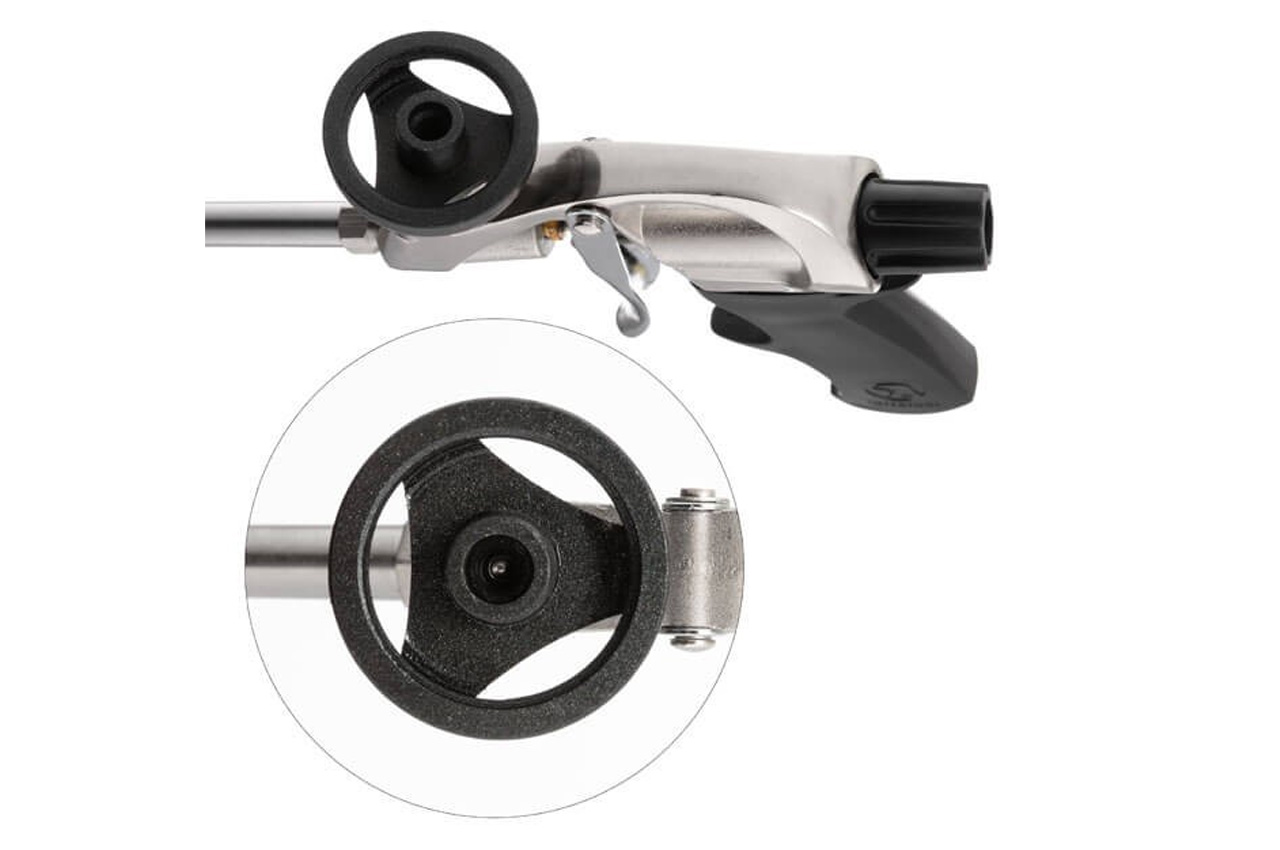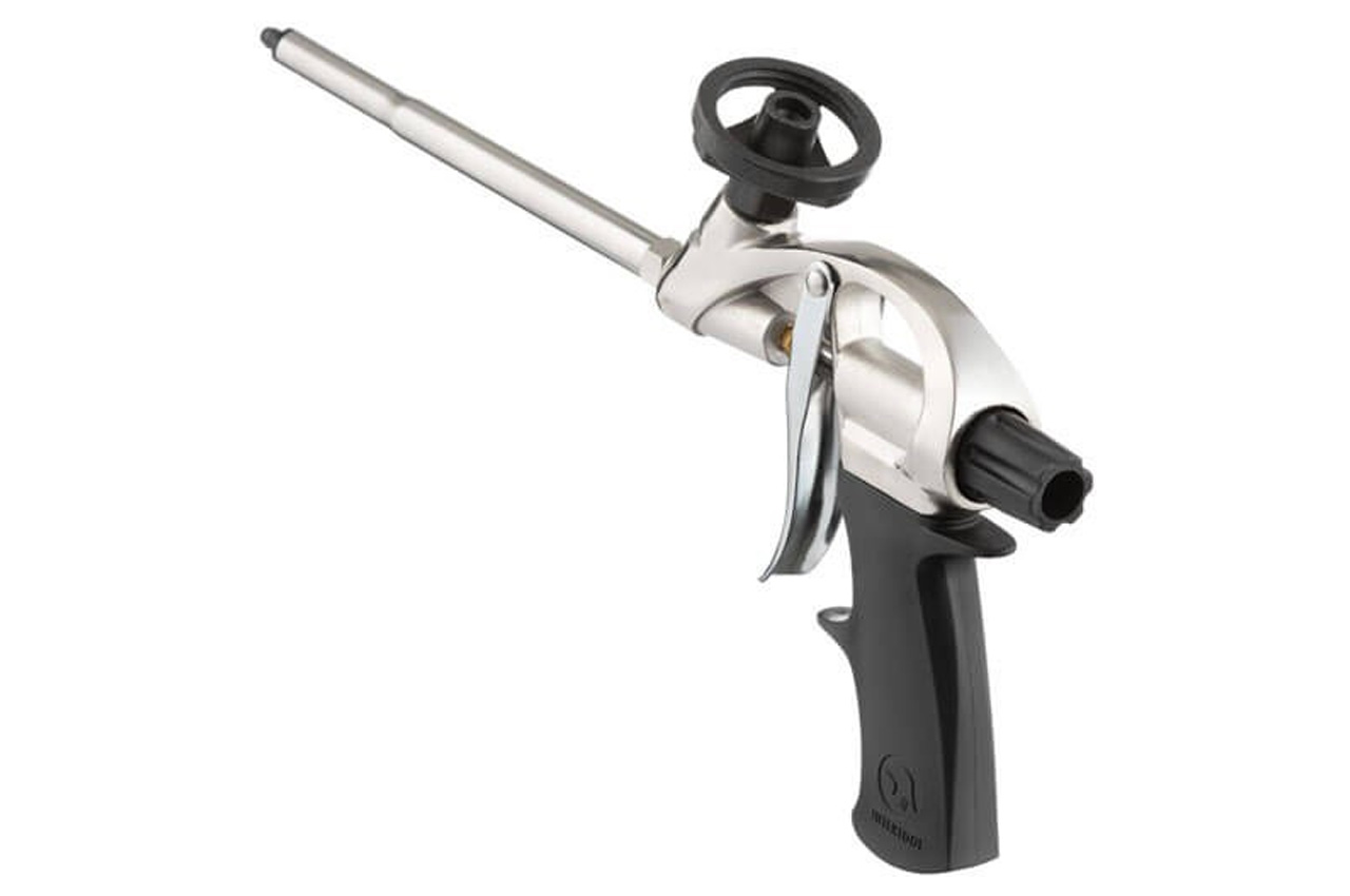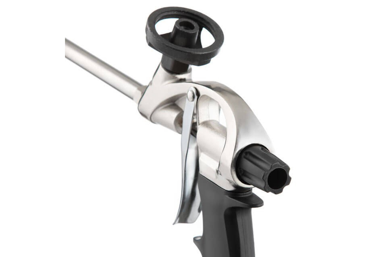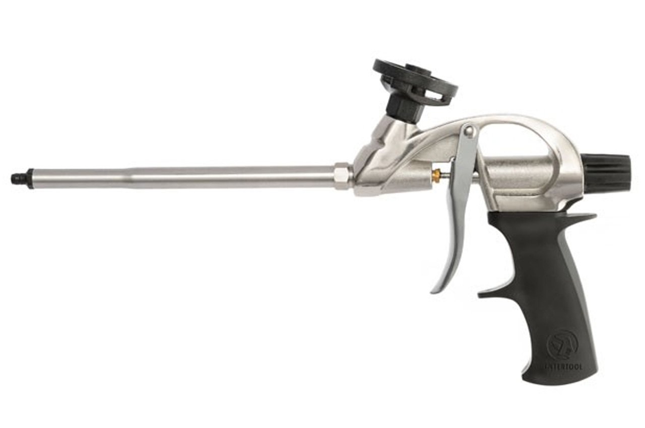 Такий інструмент використовують переважно для ізоляції, фіксації та заповнення пустот за допомогою піни. Міцний, повністю розбірний металевий корпус. Легка ергономічна пластикова рукоятка з насічками, виключає ковзання пальців під час роботи. Присутній регулювання подачі піни, що вкрай важливо для економії матеріалу і точності монтажних робіт. Сопло виготовлено зі сплаву кольорових металів, що дозволяє навіть після тривалого використання, забезпечити хорошу герметичність голки. Тефлонове покриття держателя балона. У комплект також входять чотири пластикових насадки-наконечника. Покриття: тефлонове (держателя балона); Кількість насадок: 4 од.
