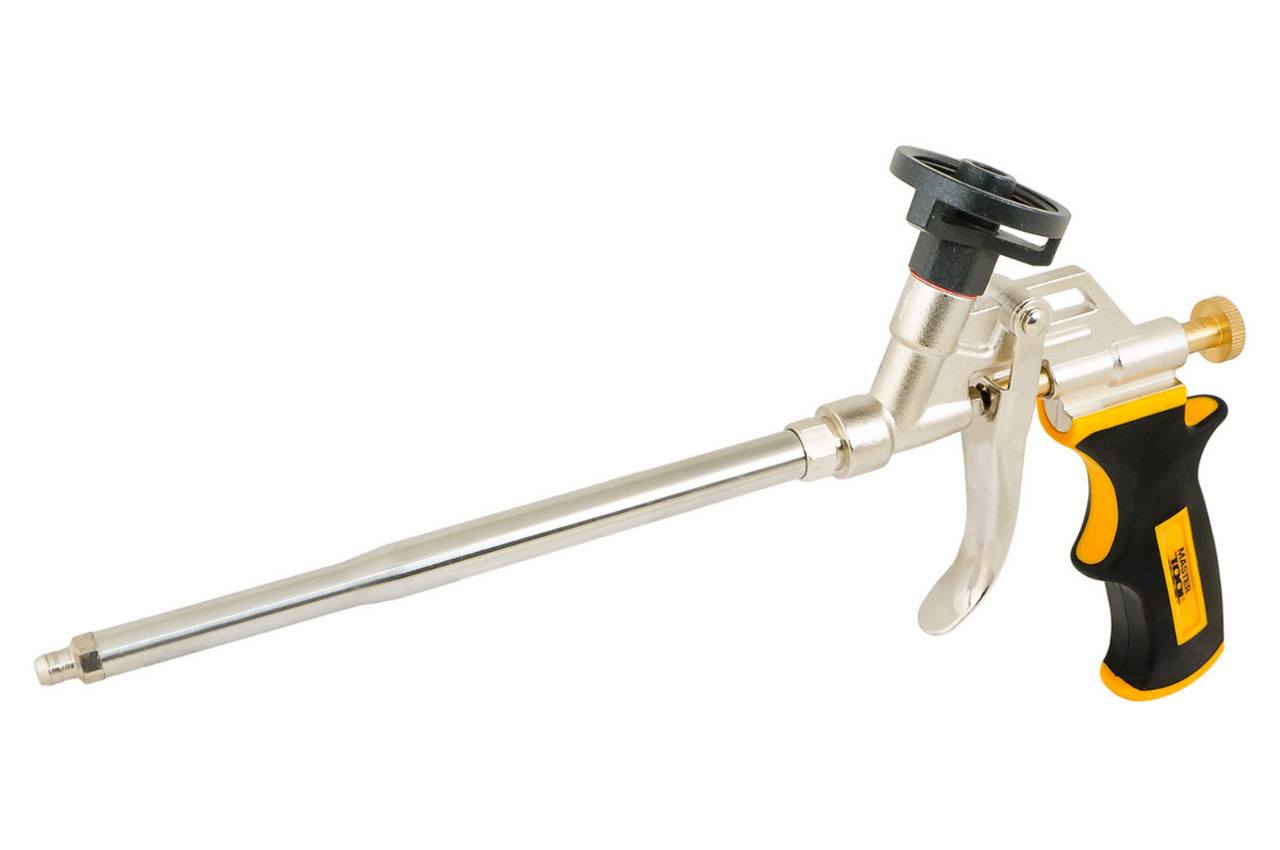 Призначений для проведення робіт з професійною монтажною піною при установці вікон, дверей, різних будівельних конструкцій. Подача піни регулюється розташованим над рукояткою пістолета гвинтом (його обертання за годинниковою стрілкою зменшує хід штока, скорочуючи кількість подається піни, і навпаки). Пістолет для монтажної піни 290 мм, тефлонове покриття баллонопріемніка, голки