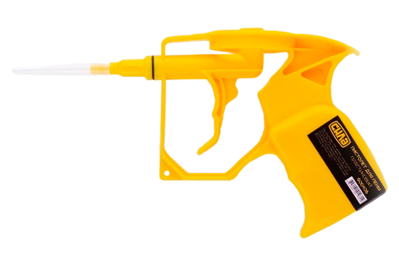 Призначений для проведення робіт з професійною монтажною піною під час встановлення вікон, дверей, різних будівельних конструкцій. Подача піни регулюється розташованим над рукояткою пістолета гвинтом (його обертання за годинниковою стрілкою зменшує хід штока, скорочуючи кількість піни, що подається, і навпаки). Пластиковий корпус.