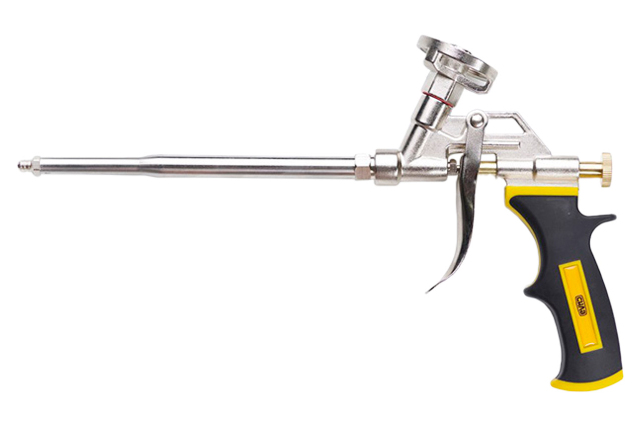 Пістолет для піни Сила ідеально підходить для роботи в важкодоступних місцях і при необхідності роботи однією рукою, цьому сприяє: - зручна рукоятка з гумовими потиличниками - обгумований регулювальний гвинт посередині пістолета ( дозволяє регулювати подачу великим пальцем ) - алюмінієвий корпус, який забезпечує суміщення легкості та міцності