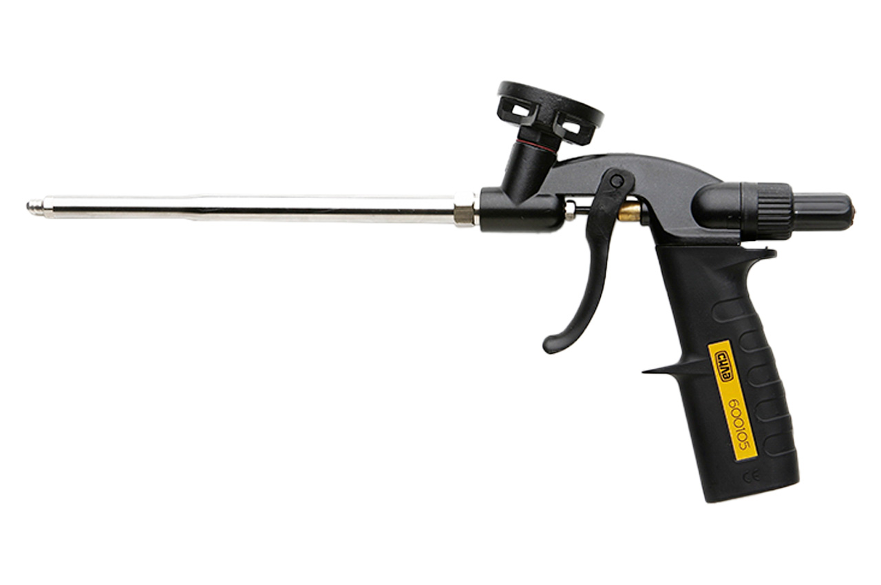 Пістолет для нанесення монтажної піни, використовується переважно для ізоляції, фіксації та заповнення пустот за допомогою піни. Інструмент оснащений міцним, повністю розбірним металевим корпусом, а також легкої ергономічної пластиковою рукояткою, з насічками, що виключає ковзання пальців під час роботи. Голка, сопло, внутрішня поверхня трубки і утримувач балона виготовлені із застосуванням міцного, тефлонового покриття. Діаметр трубки, мм: 10; Матеріал корпусу: алюміній; Матеріал корпусу: Алюміній; Матеріал наконечника: мідний з нікелевим покриттям; Матеріал сопло: нержавіюча сталь; Регулювання подачі піни: гвинт