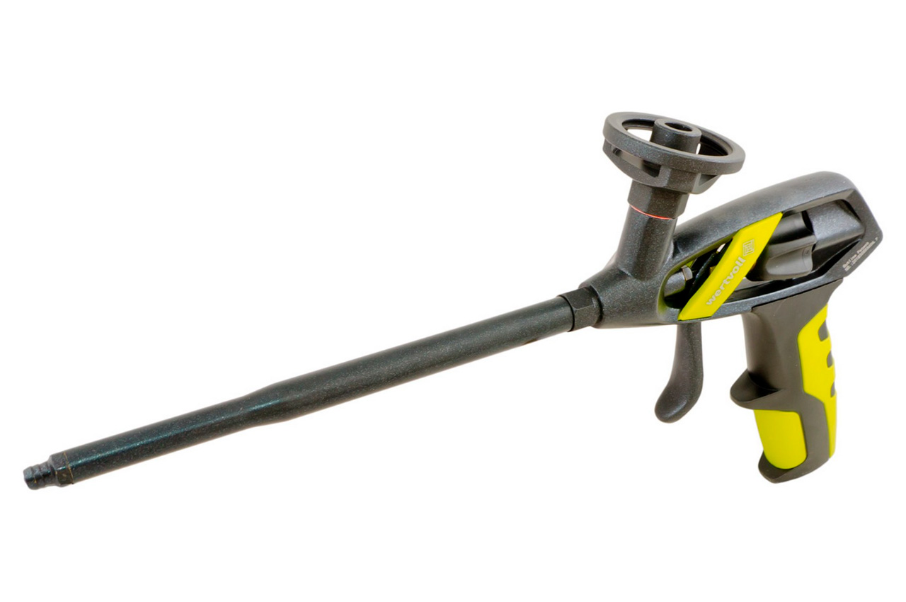Пістолет використовується для проведення робіт із професійною монтажною піною. • повне тефлонове покриття, що перешкоджає налипанню піни • регулювання подачі піни однією рукою • литий алюмінієвий корпус • латунна форсунка з тефлоновим покриттям • двокомпонентна ергономічна ударостійка ручка