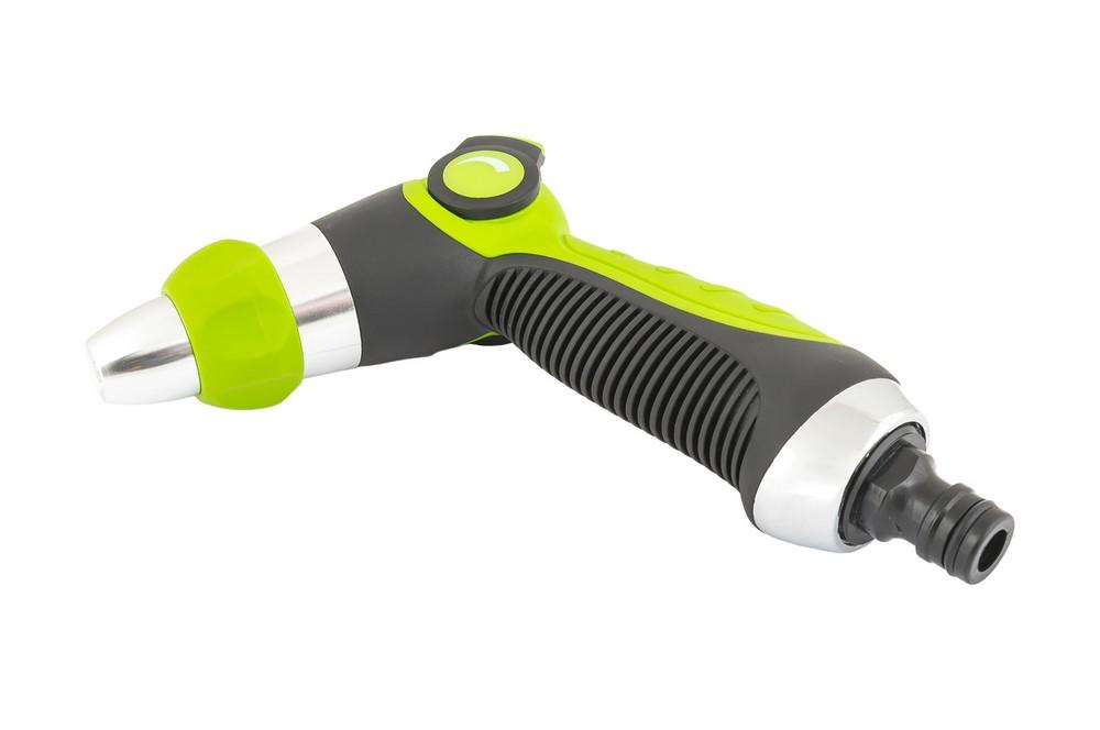 Пістолет для поливу Mastertool - це зручний та надійний інструмент для зрошення саду, клумб, газону та інших територій. Основні характеристики: • Плавне регулювання напору – дозволяє точно налаштувати силу струменя від м'якого розпилення до потужного потоку. • Металеве сопло – забезпечує довговічність та зносостійкість навіть при інтенсивному використанні. • TPR покриття - ергономічний корпус для комфортного утримання в руках. • Сумісність – підходить для стандартних садових шлангів 1/2”.
