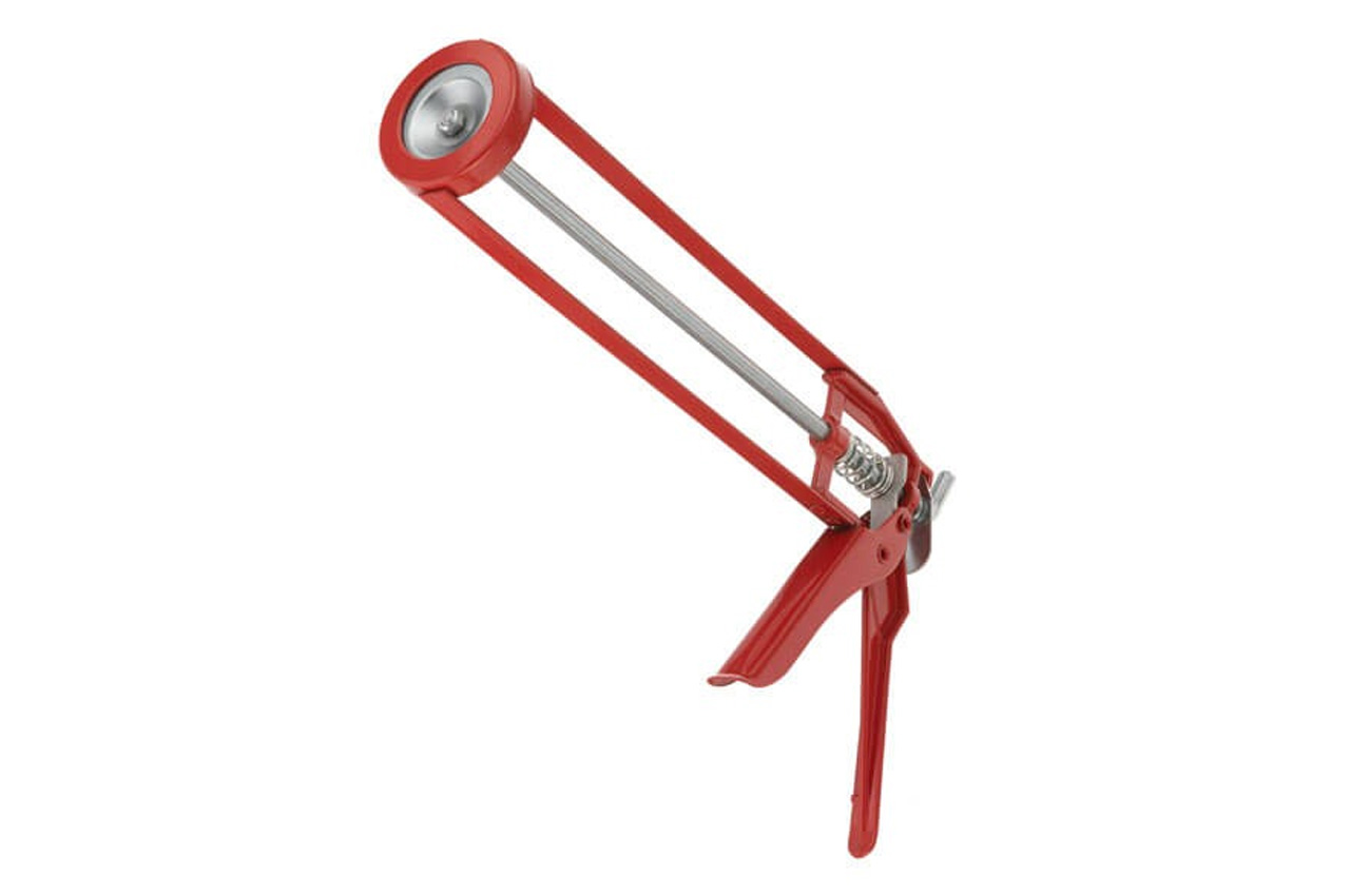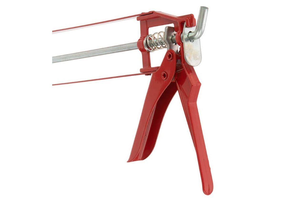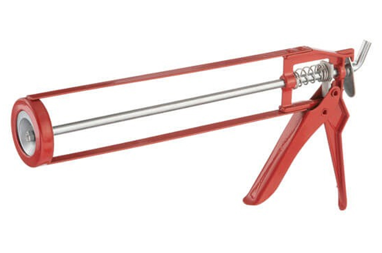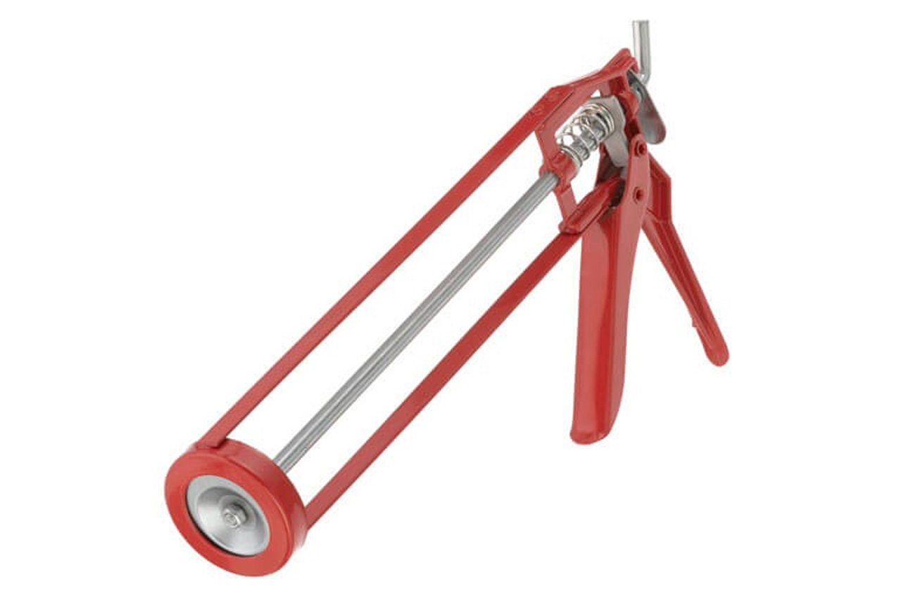 Пістолет для видавлювання силікону "рамообразний" застосовується для екстракції герметиків різних видів з туб. Завдяки рамообразной конструкції картридж фіксується більш щільно. Використання пістолета дозволяє зробити процес подачі герметика рівномірним, з високим ступенем контролю. Конструкція пістолета являє собою металеву раму з штовхачем і курком.