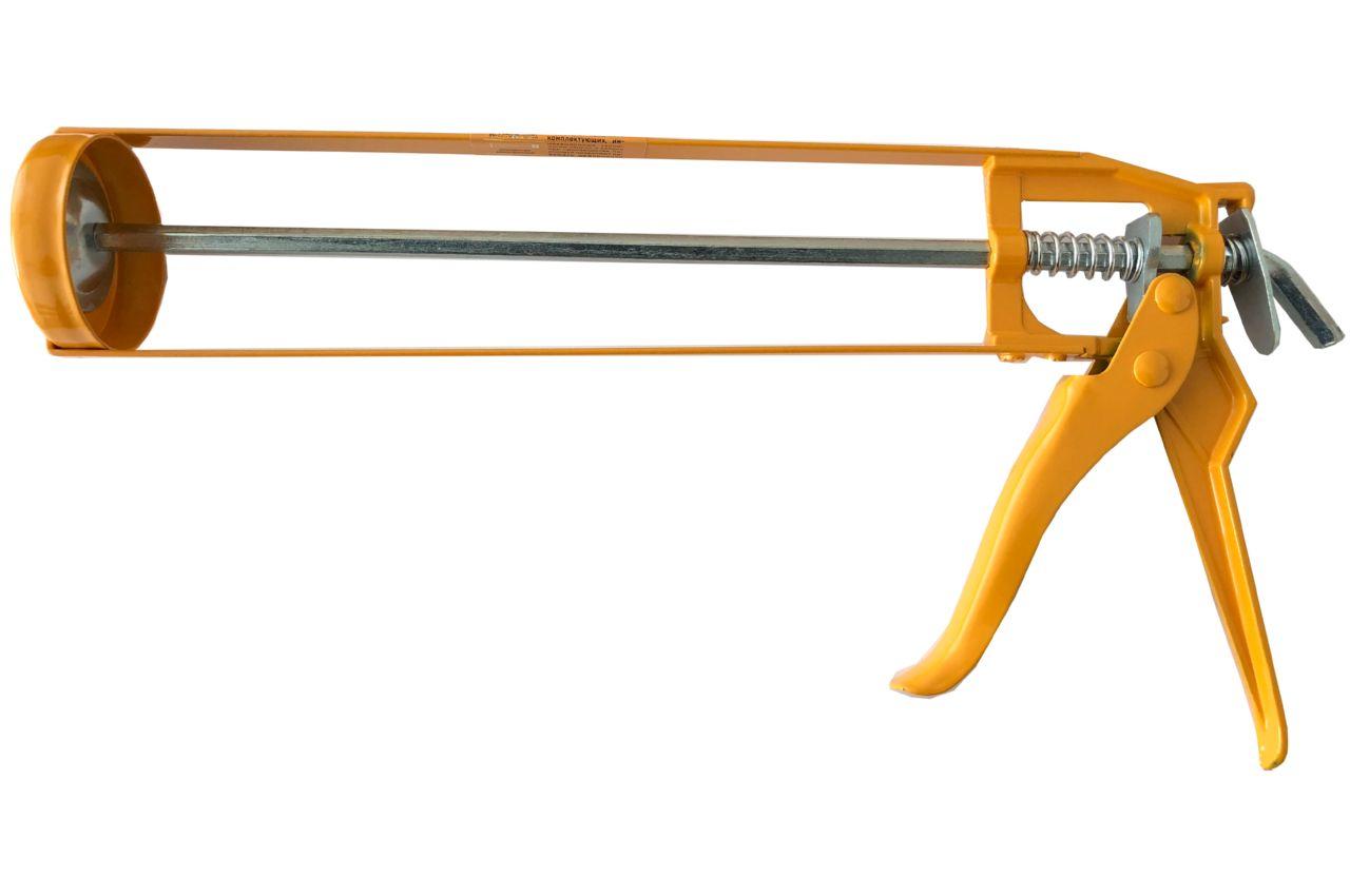 Пістолет рамкового типу ( "скелет") призначений для видавлювання різних герметиків і клейових сумішей зі спеціальних туб. Конструкція металевого корпусу пістолета дозволяє рівномірно розподіляти навантаження, що позитивно позначається як на плавності процесу видавлювання робочої суміші, так і на довговічності інструменту.