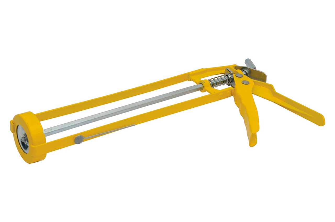 Призначений для видавлювання герметика з туби і його нанесення в цілях ізоляції, фіксації та заповнення пустот при монтажі ванн, раковин, вікон, дверей, покрівлі тощо Підходить до всіх герметиках в стандартних (310 мл) балонах. Має металевий напіввідкритий корпус, зубчастий шток з круглим перетином і ремінець на ручці для перенесення.