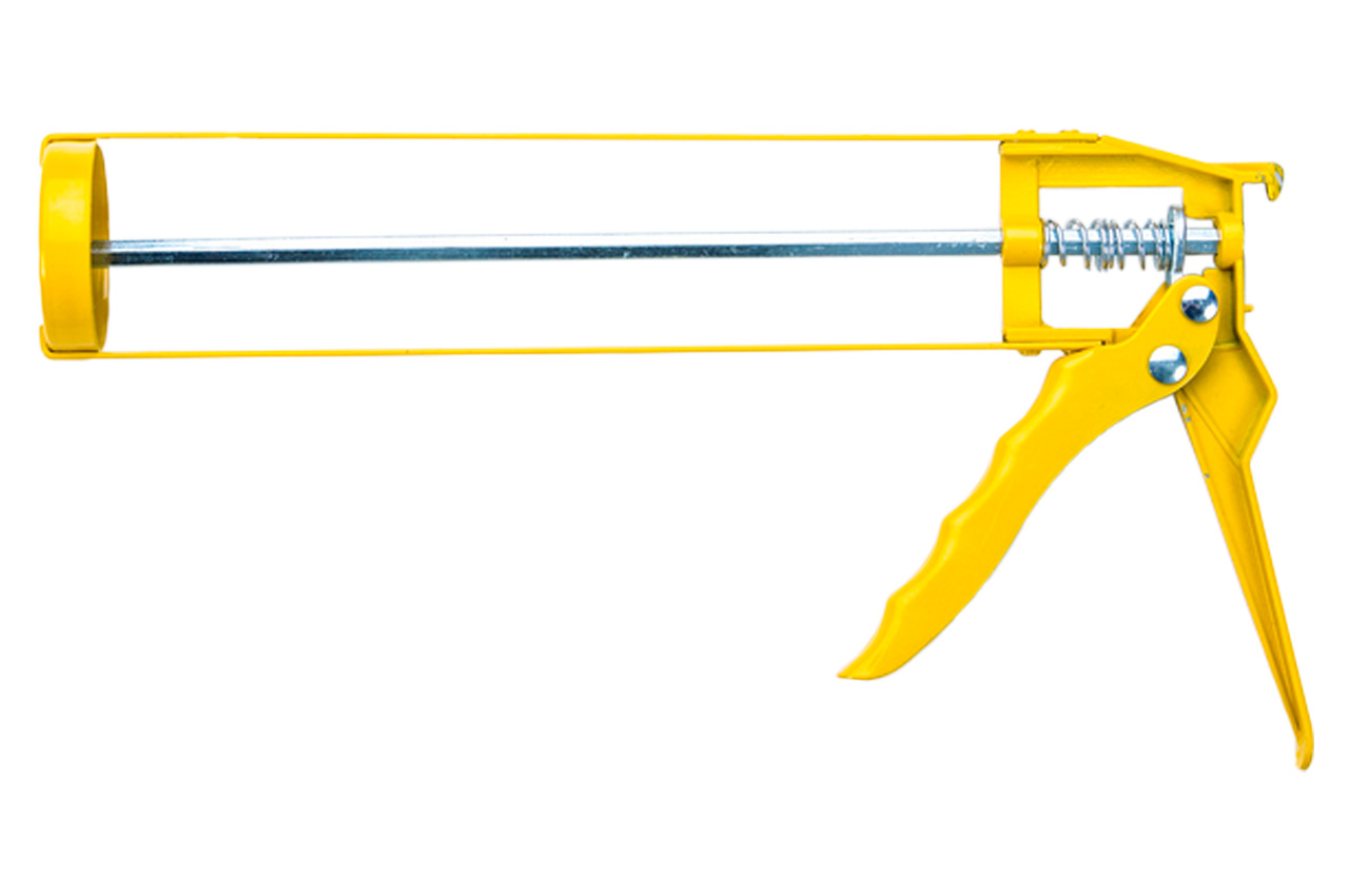 Пістолет рамкового типу ( "скелет") призначений для видавлювання різних герметиків і клейових сумішей зі спеціальних туб. Конструкція металевого корпусу пістолета дозволяє рівномірно розподіляти навантаження, що позитивно позначається як на плавності процесу видавлювання робочої суміші, так і на довговічності інструменту. Матеріал корпусу: сталь; Матеріал корпусу: Сталь; Тип конструкції: рамний