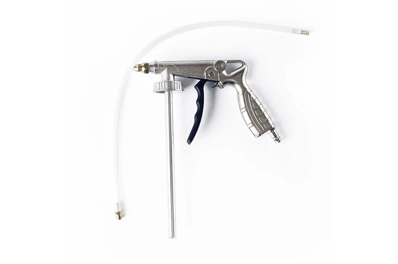 Пневматичний пістолет сконструйований для нанесення гравітекс на поверхню. Має ергономічний корпус і зручну кнопку пуску. Довжина шлангу 50 см Пневматичне з'єднання 1/4" Робочий тиск 4-6 Бар Витрата повітря 85-200 л/хв