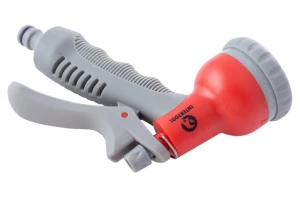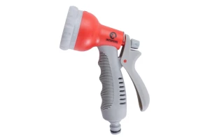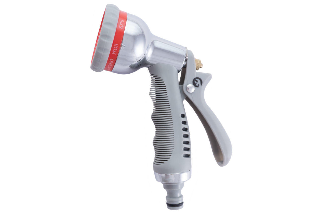 Багатофункціональний пістолет розпилювач GE-0005 відповідає сучасним стандартам - має хромований корпус з ергономічною прогумованою ручкою, що запобігає вислизанню з руки. Оснащений 8-ма зручно перемикаються режимами поливу - від сконцентрованого струменя до розпилення. У комплекті з трьома надійними з'єднаннями (адаптер універсальний з внутрішнім різьбленням 1/2" і 3/4", конектор 1/2" для шланга 1/2" та конектор з аквастопом 1/2" для шланга 1/2") легко і швидко підключається до системи поливу без використання додаткових інструментів.