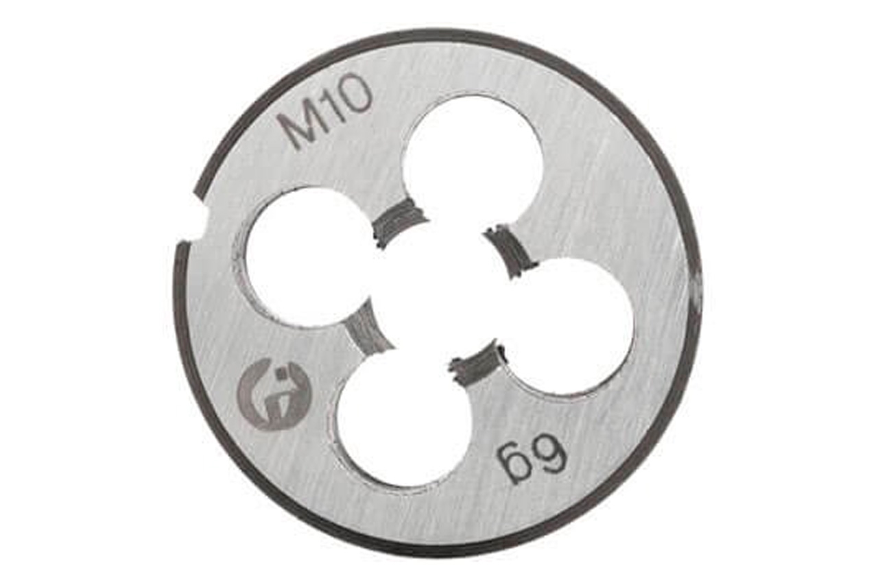 Плашка M10 x 1,5 мм. різьбонарізний інструмент призначений для нарізування зовнішньої різьби вручну або на металорізальному верстаті. Розмір: M10 х 1,5 мм