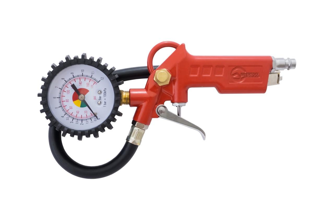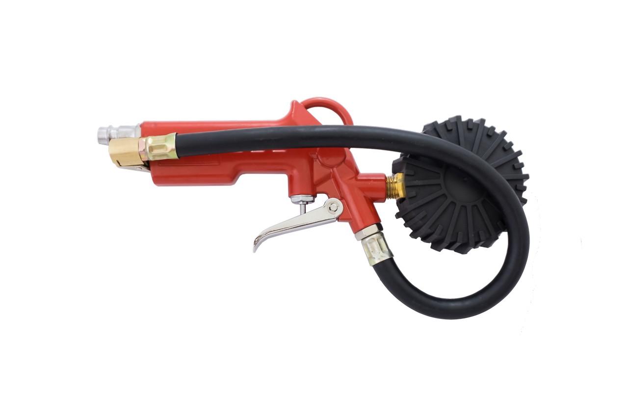 Пістолет для накачування шин універсальний пристрій, здатний за лічені хвилини накачати не тільки шини та камери транспортних засобів, а й надувні човни, м'ячі та ін. Інструмент оснащений манометром для контролю тиску та клапаном скидання повітря, коли необхідно спустити тиск до потрібного показника. Манометр з двома шакалами PSI та bar для зручності зчитування показників. Для простого підключення до шланга високого тиску передбачений універсальний фітинг для швидкороз'ємного з'єднання. Пістолет для підкачування має повністю металевий корпус, манометр у гумовому кожусі для надійного захисту від механічних пошкоджень. Також пістолет оснащений латунним наконечником, що забезпечує повну герметичність та підвищену зносостійкість елемента. Робочий тиск: до 10 атм; Діаметр шланга: 6-8 мм