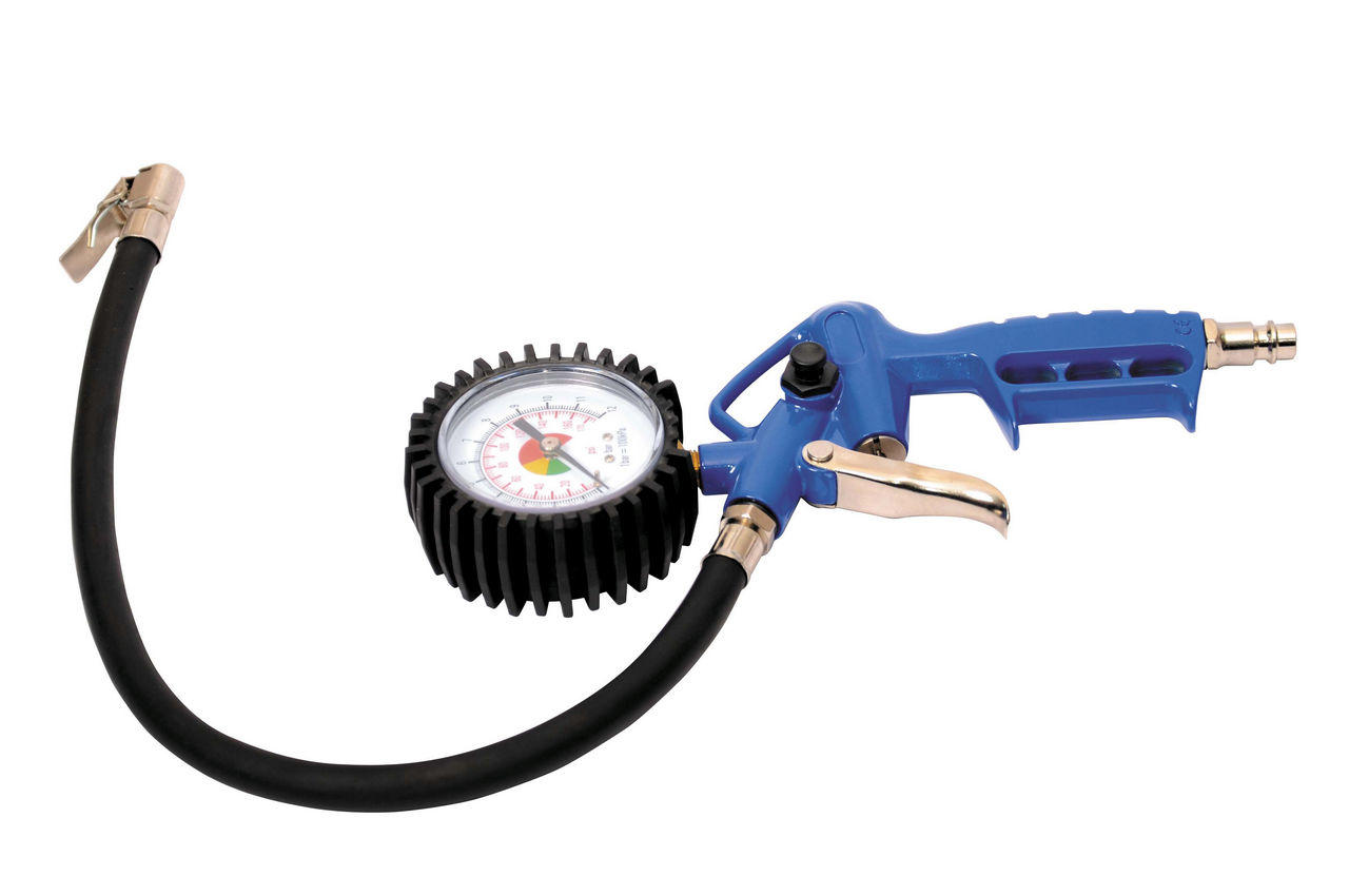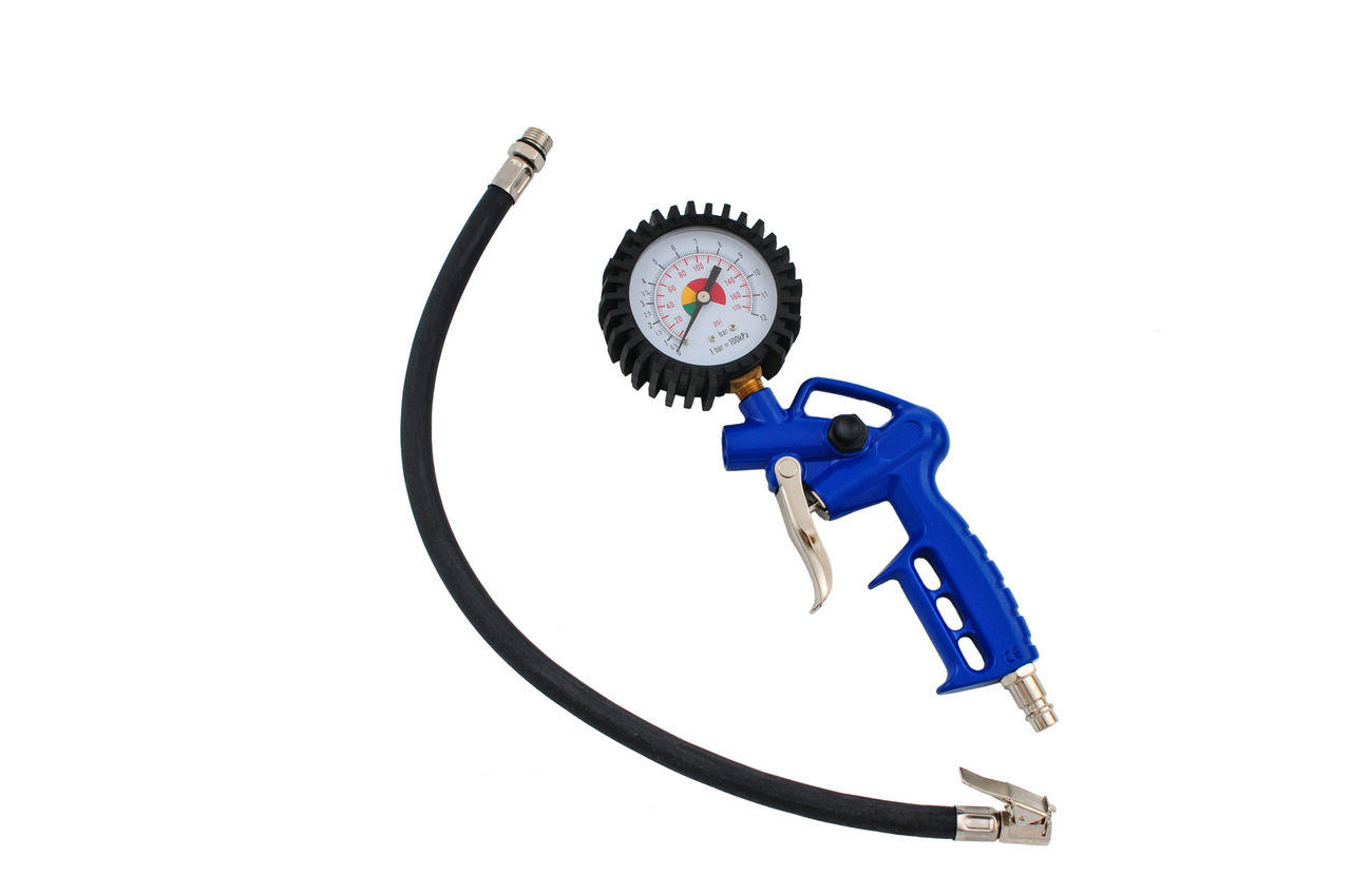 Призначений для накачування стисненим повітрям максимальним тиском 12 атм ємностей і повітряних камер, вимірювання тиску повітря і відведення його надлишку. Підходить для професійного використання. Довжина шланга 50 см.