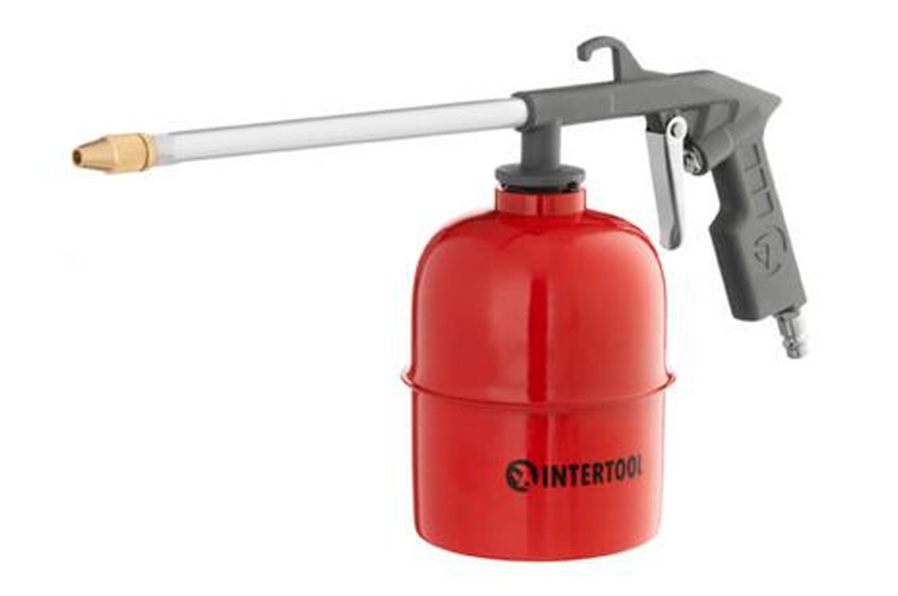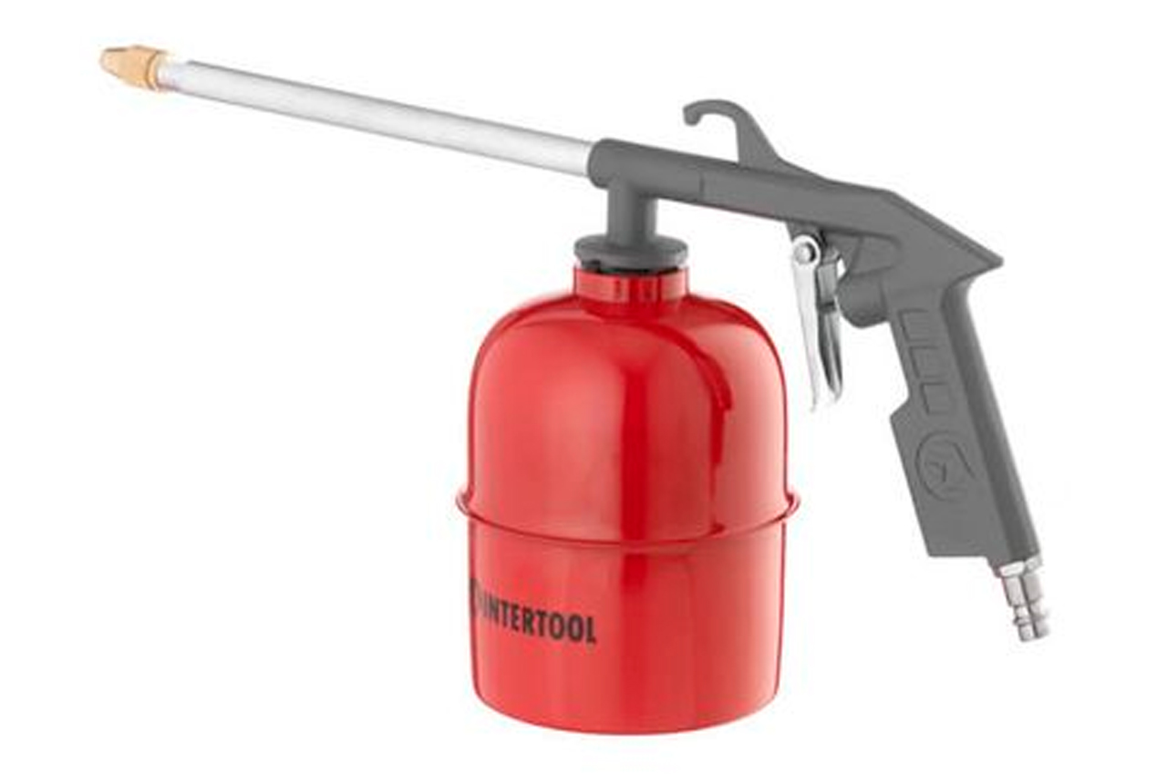 Пневмопистолет для розпилення рідин оптимально підходить для нанесення миючих розчинів, мовили і подібних матеріалів. Обсяг резервуара становить 700 мл, а робочий тиск досягає 10 атм. Діаметр шланга: 6-8 мм; Обсяг бачка: 700 мл; Робочий тиск: до 10 атм
