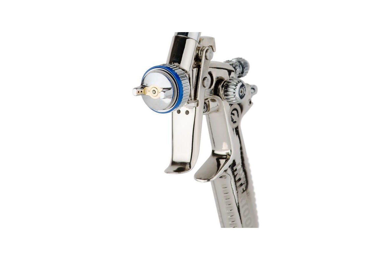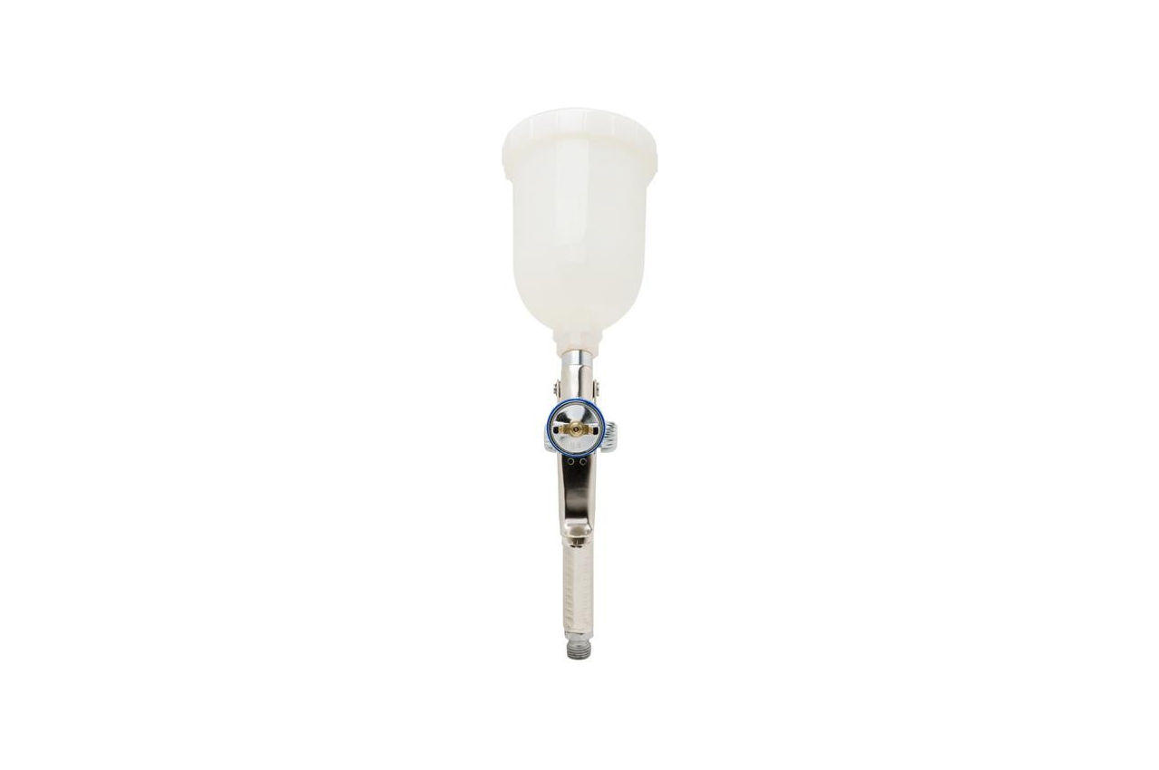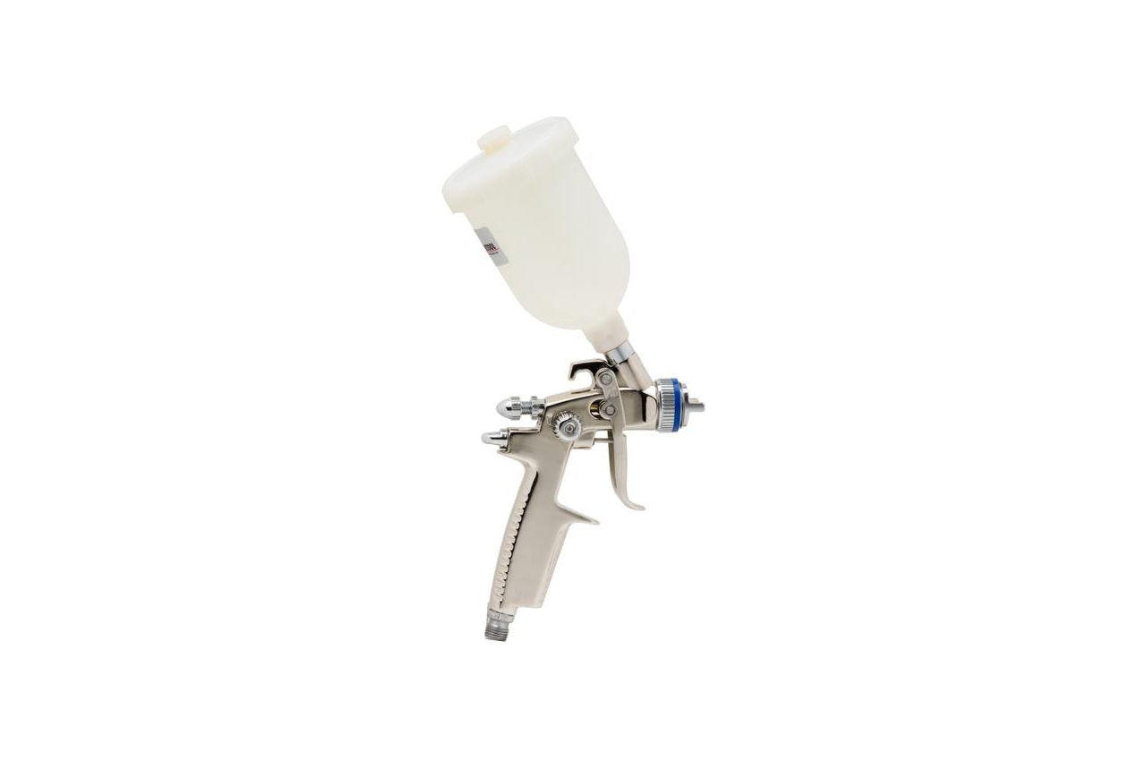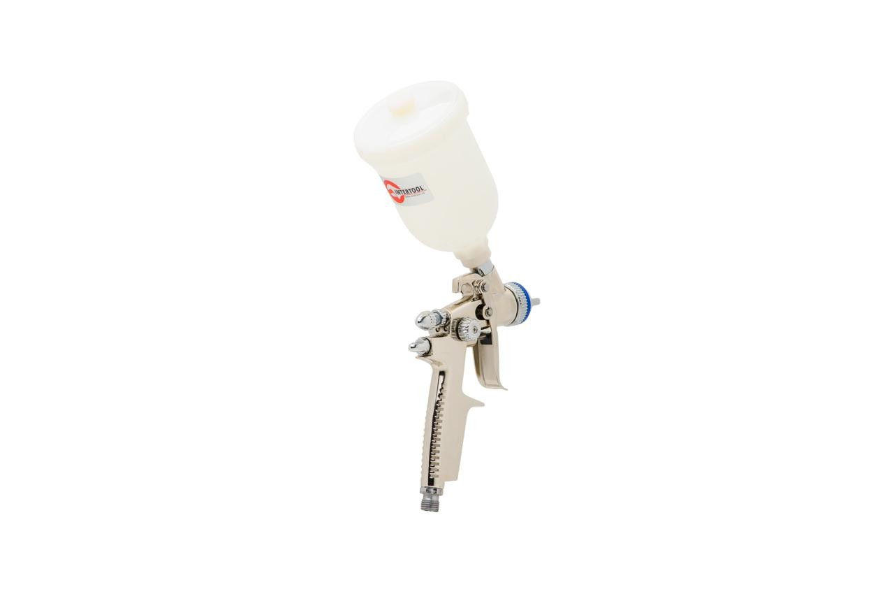 Фарбопульт професійний HVLP-II MINI PT-0128 відмінно підійде для широкого спектра фарбувальних робіт як професійних, так і побутових. Технологія розпилення HVLP-II забезпечує низьке туманообразование, знижує витрати фарбувального матеріалу, що дозволяє досягти перенесення ЛФМ на поверхню до 75%. Висока якість комплектуючих і збірки гарантують високу надійність і зносостійкість. Особливості Зручний, компактний корпус; Двостороння регулювання факела, Плоский і круглий факел з максимальним діаметром до 15 см. Форсунка 0,8 мм. Витрата фарби: 90 мл / хв; Робочий тиск: 1,5 - 2,5 атм; Діаметр форсунки: 0,8 мм; Витрата повітря: 170 л / хв; Розташування бачка: верхнє; Обсяг бачка: 250 мл; Матеріал бачка: пластик