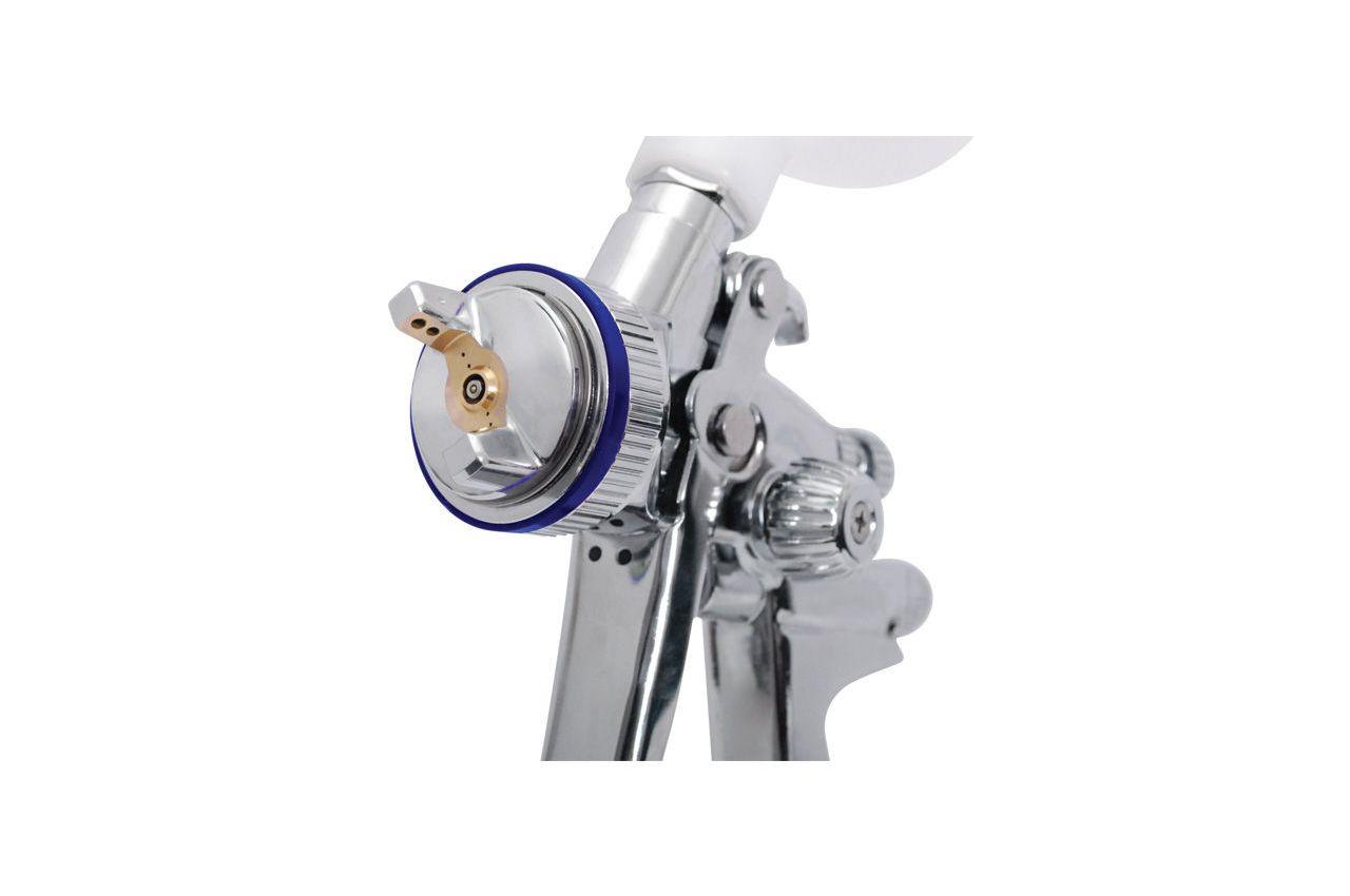Професійний фарбувальний пістолет PT-0105D нового покоління HVLP II - це аналог PT-0105, але з розширеною комплектацією. До неї увійшли: регулятор потоку повітря з високоточним цифровим манометром, стійким до розчинників і агресивних речовин, фільтр для бачка, гайковий ключ, йоржик для чищення, шестигранні ключі, поворотний з'єднувач і підставка. Даний пістолет призначений для якісної обробки поверхні акриловими і водорозчинними фарбами, нитрокрасками, металіками і неметаллики, перламутр, різними типами грунтовок, шпаклівками рідкої консистенції і ін. Робочий тиск: до 2 атм; Діаметр форсунки: 1.3 мм; Розмір факела: 27 см; Витрата повітря: 425 л / хв; Розташування бачка: верхнє; Обсяг бачка: 600 мл; Матеріал бачка: пластик; Комплектація: цифровий манометр; <br> пластиковий бачок; <br> форсунка; <br>