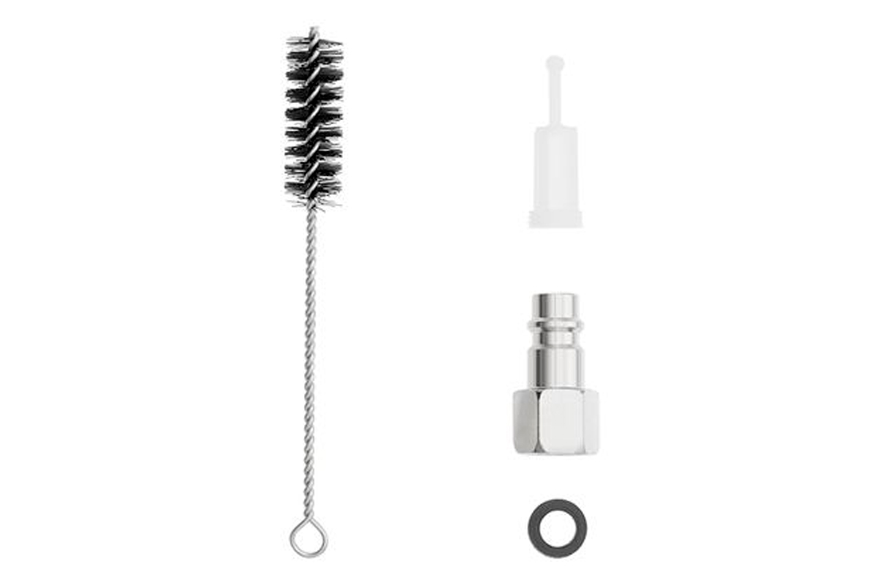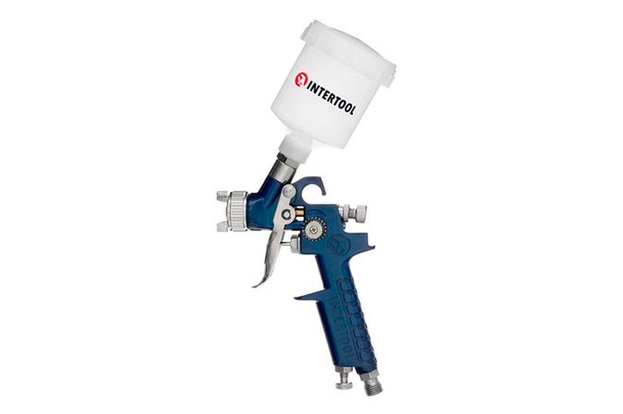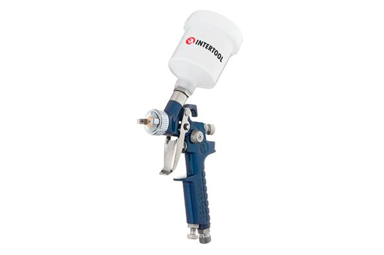 Пістолет фарбувальний використовується для фарбування невеликих поверхонь, тонування, аерографії, художнього лакування. Фарборозпилювач створений за технологією HVLP (High Volume, Low Pressure - великий обсяг, низький тиск 0,7 bar), завдяки чому досягається 75% ефективність перенесення ЛФМ на поверхню і економно витрачаються дорогі матеріали. Даний краскопульт може використовуватися з більшістю видів ЛФМ. Розташування пластикового бачка ємністю 125 мл - верхнє. При робочому тиску до 3 атмосфер витрата повітря не перевищує 230 л / хв. Форсунка діаметром 0,8 мм дає можливість розпилення матеріалу плоским овальним факелом. Робочий тиск: до 3 атм; Діаметр форсунки: 0.8 мм; Витрата повітря: до 230 л / хв; Розташування бачка: верхнє; Обсяг бачка: 125 мл; Матеріал бачка: пластик; Діаметр шланга: 6-8 мм