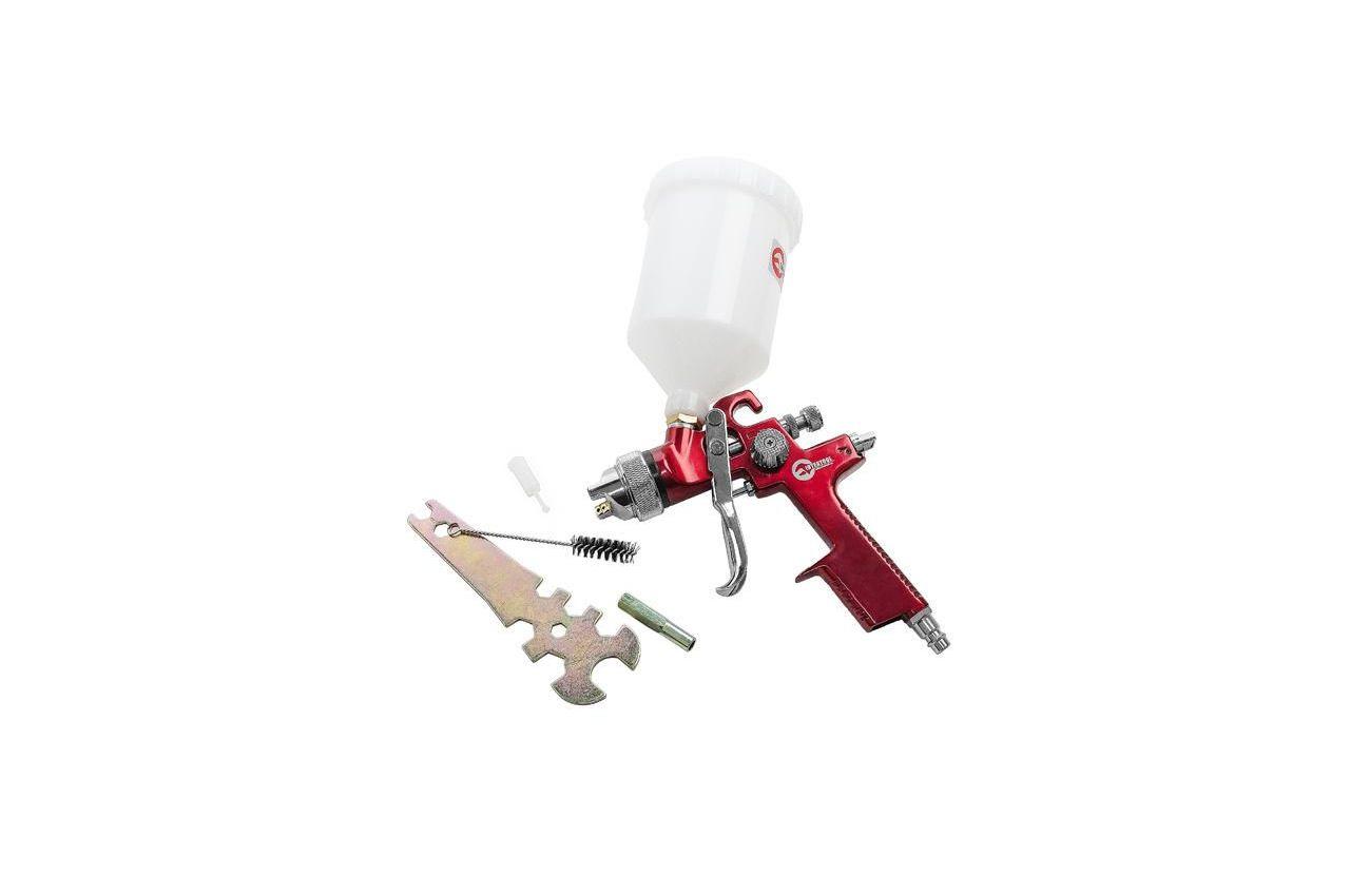 Модель фарбувального пневматичного пістолета PT-0104 - це професійний інструмент, який призначений для роботи з різними видами ЛФМ. Він розроблений на основі технології HVLP, що дозволяє значно знизити втрати матеріалів на туманообразование. Робочий тиск: до 3 атм; Діаметр форсунки: 1.4 мм; Витрата повітря: 230-300 л / хв; Розташування бачка: верхнє; Обсяг бачка: 600 мл; Матеріал бачка: пластик; Діаметр шланга: 6-8 мм
