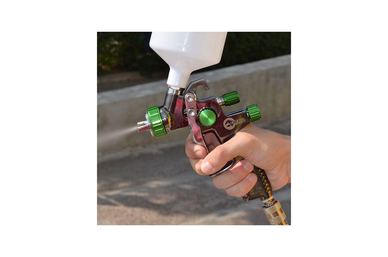 Фарборозпилювач РТ-0132 - інструмент професійного класу, використовується для високоефективного фарбування різних поверхонь: дерев'яних, пластикових, металевих. Найчастіше РТ-0132 використовується в автомайстерень або при проведенні будівельно-оздоблювальних робіт. Дуже важлива особливість, заради якої варто купити краскопульт РТ-0132: висока ефективність фарбування при низькій витраті ЛФМ на перераспил. Робочий тиск: до 1,5 атм; Витрата повітря: 170-200 л / хв; Діаметр форсунки: 1.3 мм; Обсяг бачка: 600 мл; Розташування бачка: верхнє; Матеріал бачка: пластик; Діаметр шланга: 6-8 мм