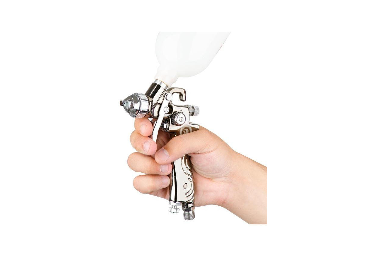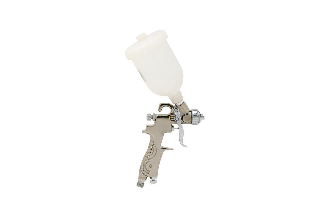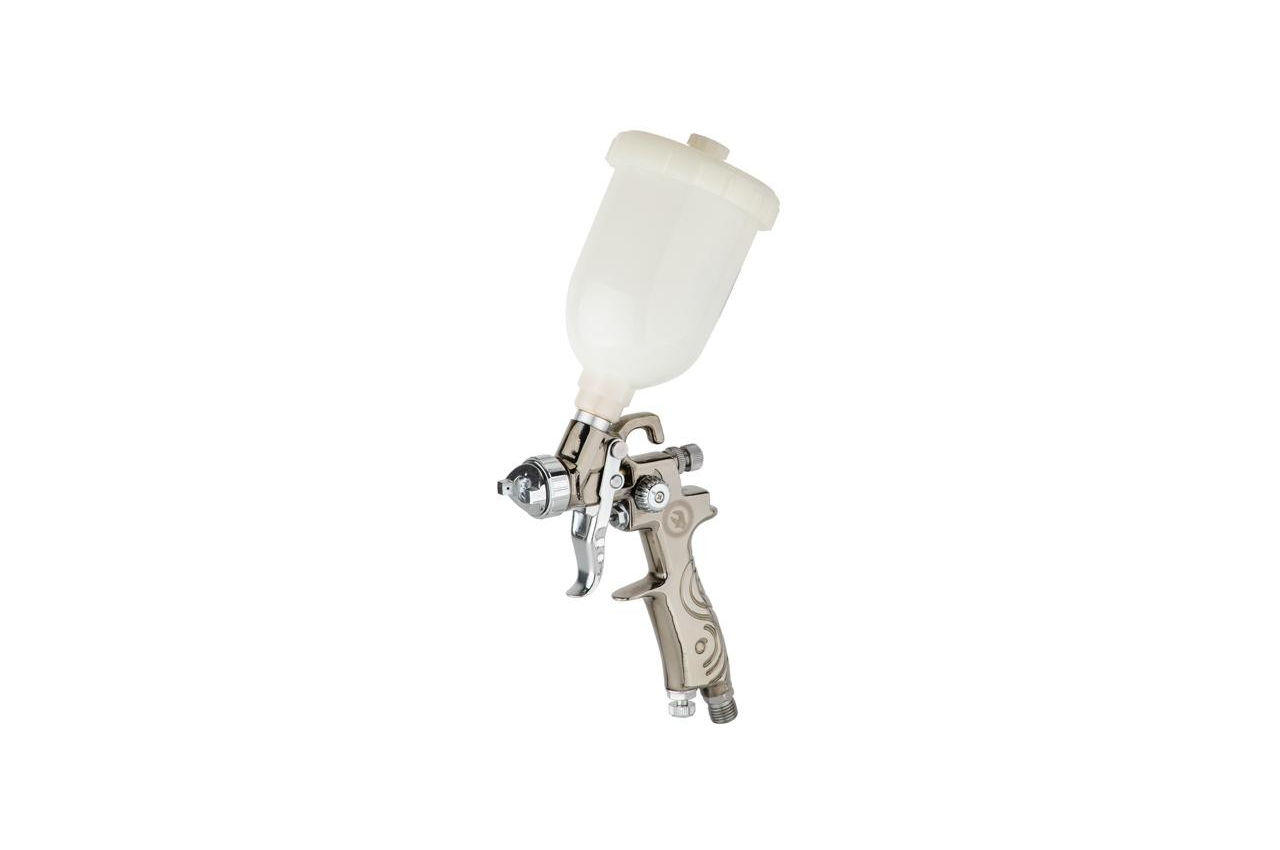 Технологія розпилення LVMP забезпечує найкращий перенесення фарбувального матеріалу до 95%. За рахунок більш високого тиску дозволяє виконувати фарбування Бестром без втрати якості. Розмір факела 15 см. Розмір факела: 15 см; Робочий тиск: 2,5 атм; Витрата повітря: 140 л / хв; Діаметр форсунки: 0,8 мм; Обсяг бачка: 250 мл; Розташування бачка: верхнє; Матеріал бачка: пластик