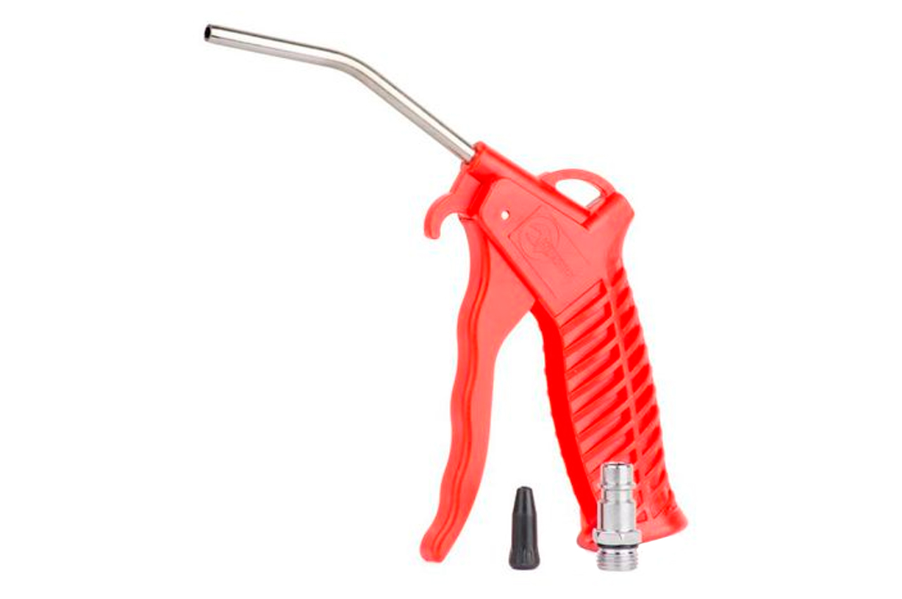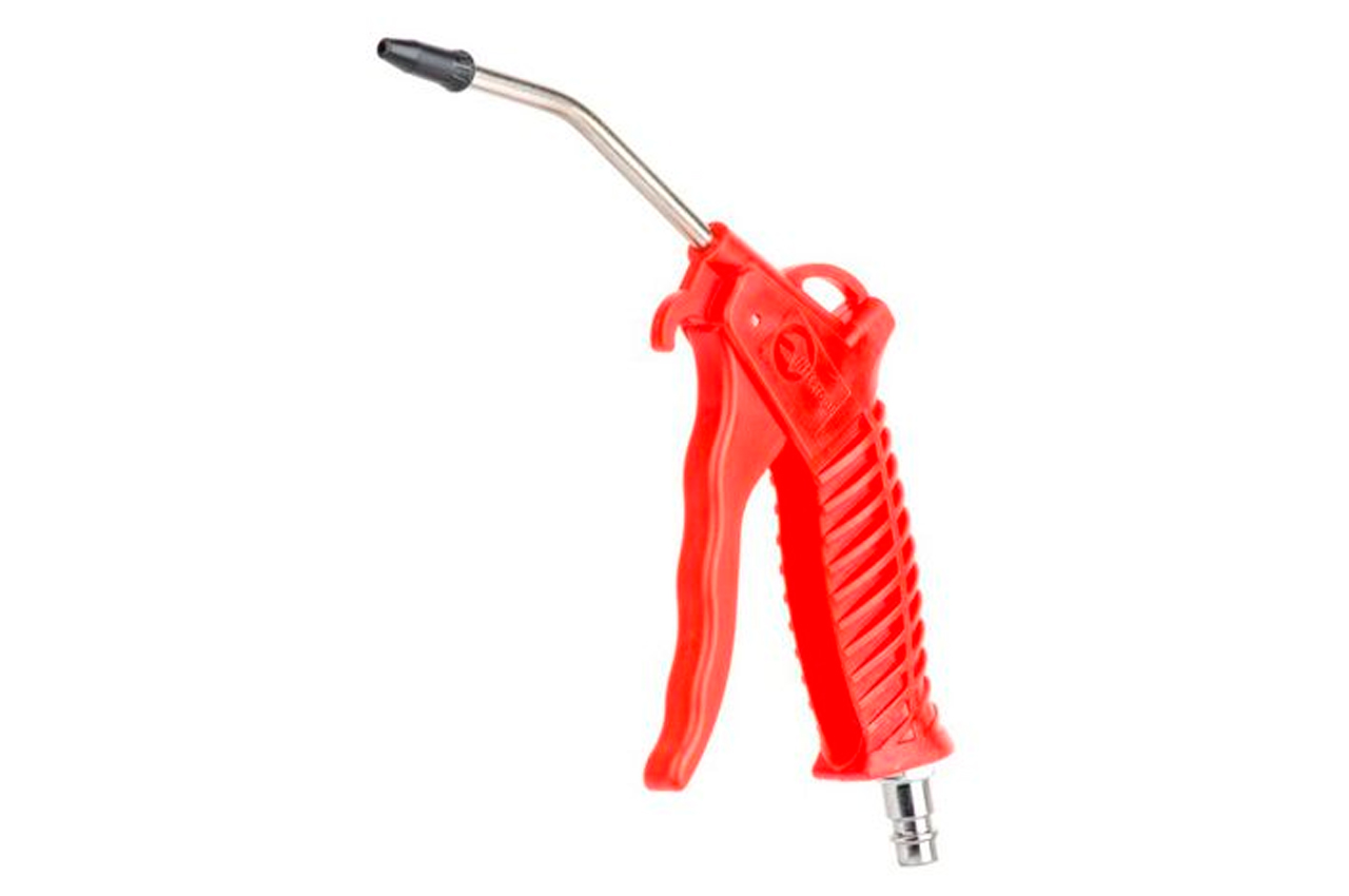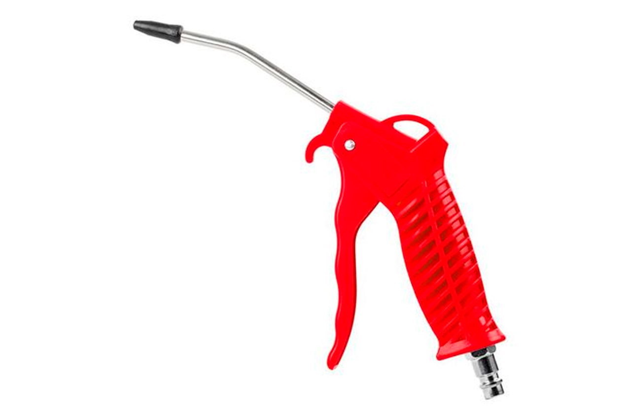 Пістолет продувний - корисна річ в арсеналі пневматичного обладнання у майстри в гаражі і в професійній автомайстерні. Його часто використовують в будівництві, на виробництві, на СТО, для продувки і очитки деталей, видалення стружки, пилу, для очищення фільтрів, на автомийці для видалення води після мийки автомобіля і ін. Головна особливість продувочного пістолета PT-0805 - це вигнута подовжена сталева насадка 100 мм, з пластиковим наконечником, яка дозволяє продувати навіть важкодоступні місця за рахунок великої швидкості повітря і робочого тиску до 8 атм. Міцний цілісний пластик, з якого виконаний пістолет забезпечує високу надійність і довгий строк служби інструменту. Ручка з ребрами жорсткості гарантує повне захоплення в роботу, пістолет зручно сидить в руці і не вислизає. Пластиковий наконечник не пошкоджує, не дряпає і не залишає слідів на поверхні при торканні. Потік повітря легко регулюється за рахунок важеля і клапана, які передбачені в конструкції пістолета продувочного. Зручна петля для підвісу зверху на корпусі для комфортного зберігання, пневмопістолети можна легко підвісити на стіну або на гачок. Особливості: Легкий і зручний у використанні. Міцний матеріал виготовлення. Пластиковий наконечник. В комплекті перехідник на відповідну частину швидкороз'ємного з'єднання для швидкого монтажу до пневмосистеме. Матеріал корпусу: пластик; Наконечник: 10 см; Інша: наконечник в комплекті пневмопистолет можна легко підвісити на стіну або на гачок. Особливості: Легкий і зручний у використанні. Міцний матеріал виготовлення. Пластиковий наконечник. В комплекті перехідник на відповідну частину швидкороз'ємного з'єднання для швидкого монтажу до пневмосистеме. Матеріал корпусу: пластик; Наконечник: 10 см; Інша: наконечник в комплекті пневмопистолет можна легко підвісити на стіну або на гачок. Особливості: Легкий і зручний у використанні. Міцний матеріал виготовлення. Пластиковий наконечник. В комплекті перехідник на відповідну частину швидкороз'ємного з'єднання для швидкого монтажу до пневмосистеме. Матеріал корпусу: пластик; Наконечник: 10 см; Інша: наконечник в комплекті
