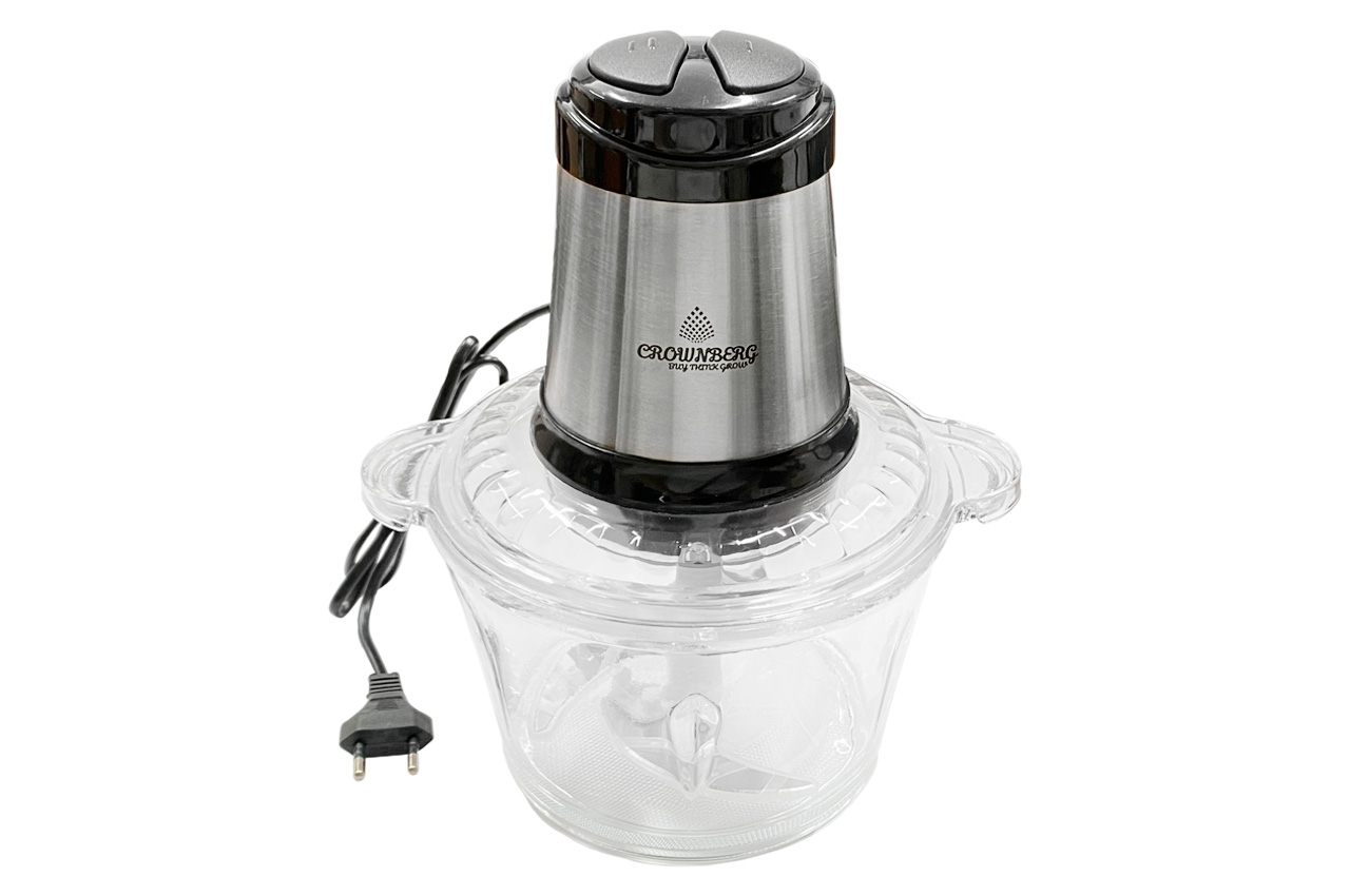 Електричний подрібнювач потужністю 500 Вт зі скляною чашею об’ємом 2 л. Призначений для швидкого та ефективного подрібнення м’яса, овочів, фруктів та інших продуктів. Міцна скляна ємність і гострі леза забезпечують надійну роботу та довговічність.