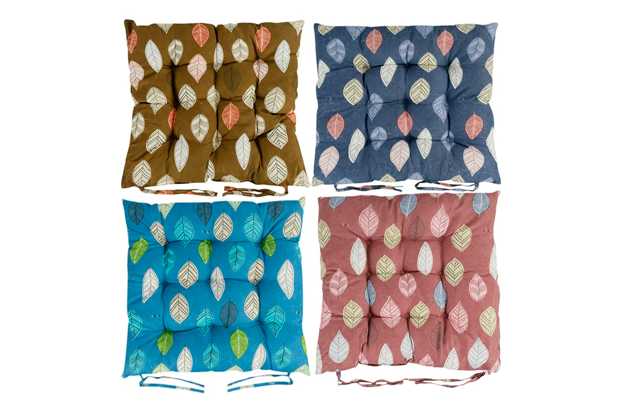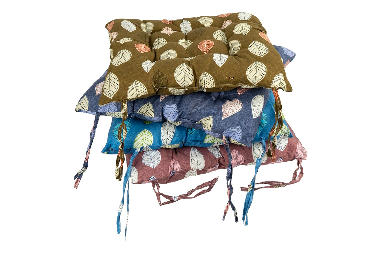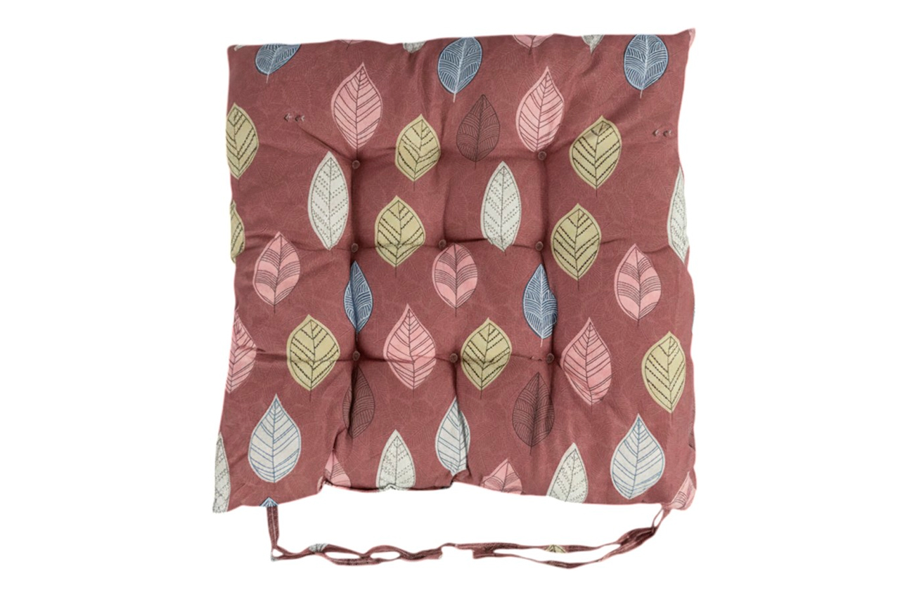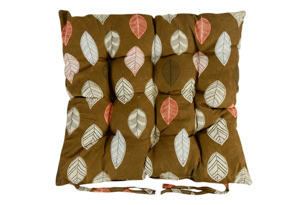 Подушка на стілець "Листя", стьобана із зав'язками 400х400мм