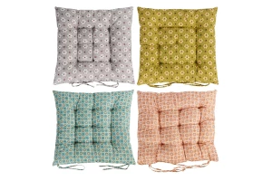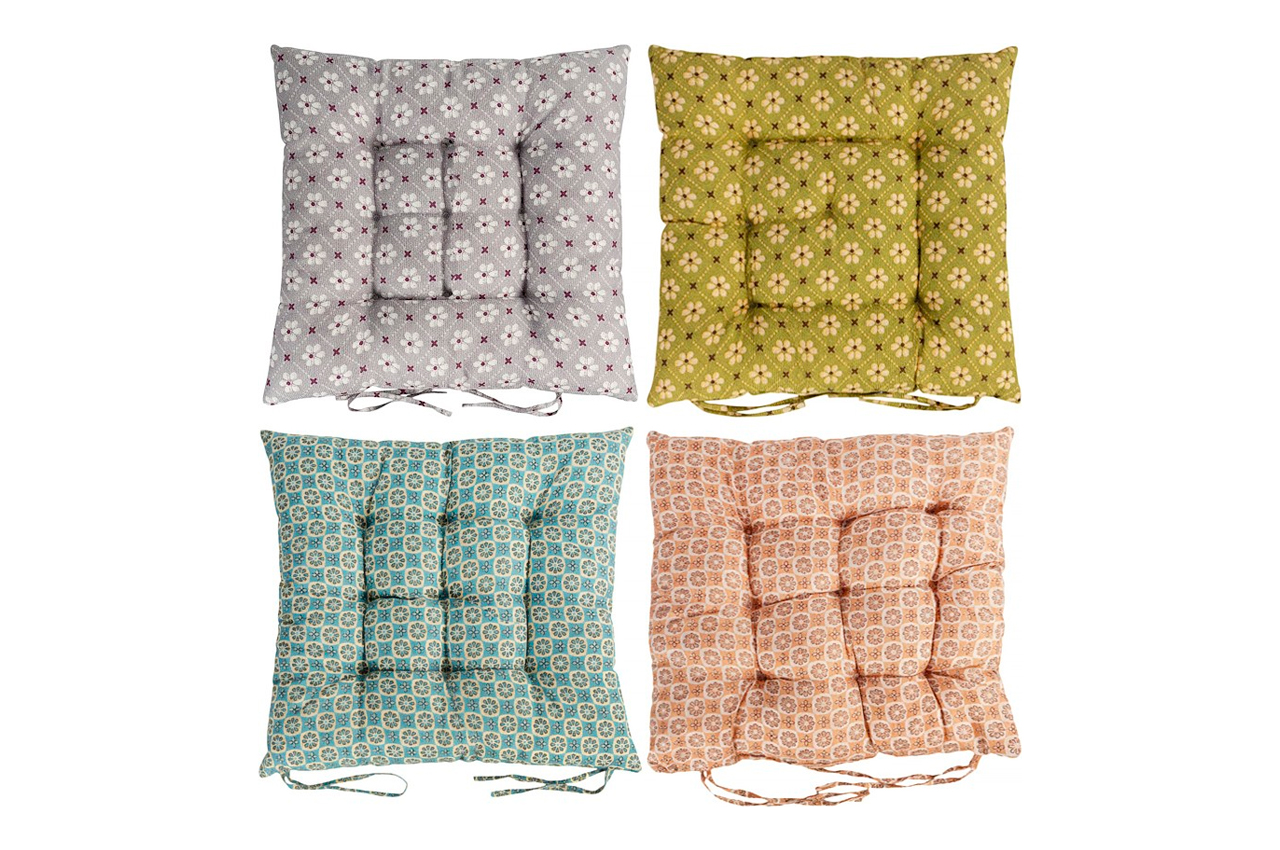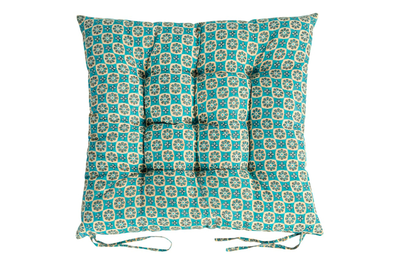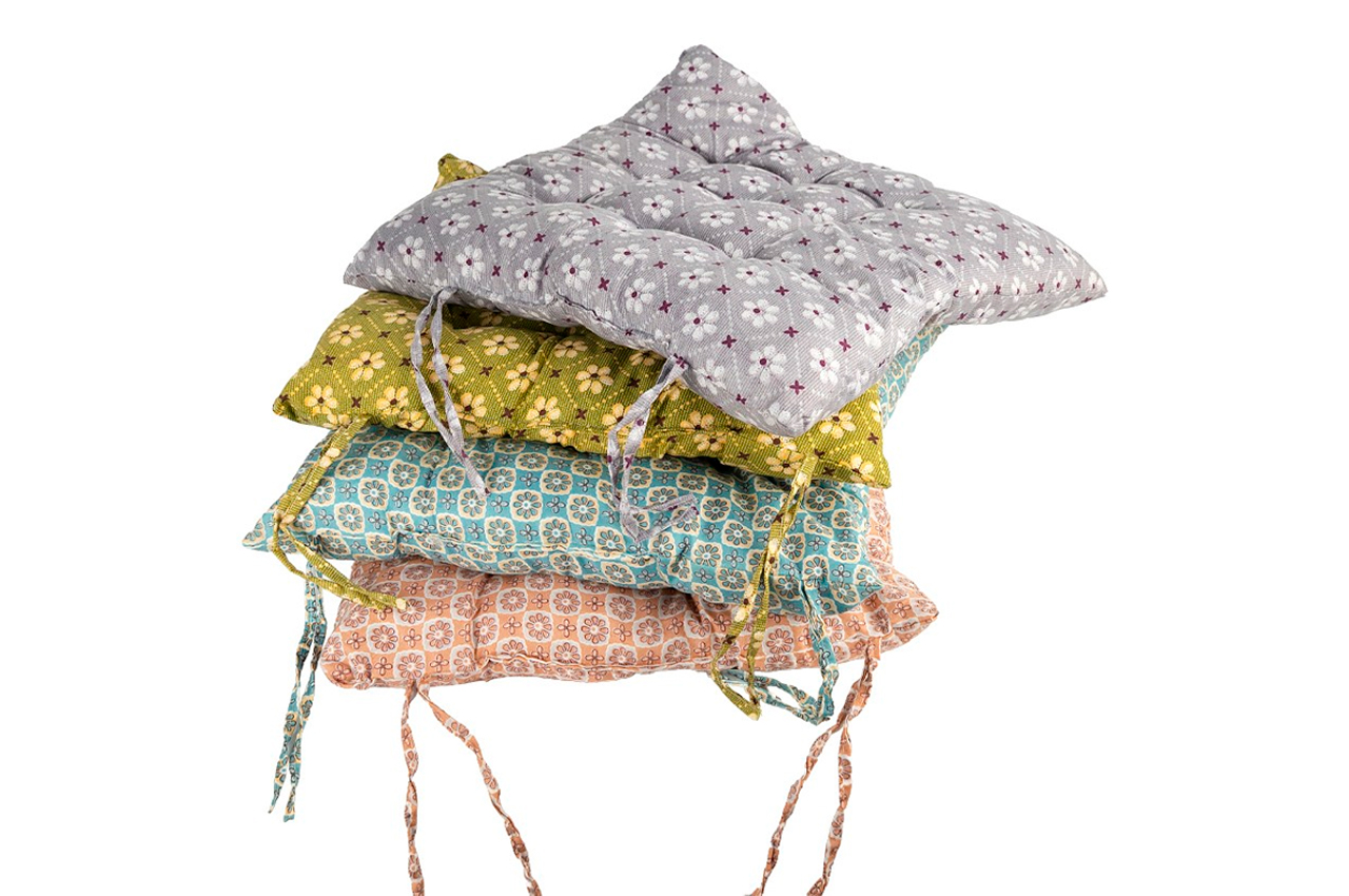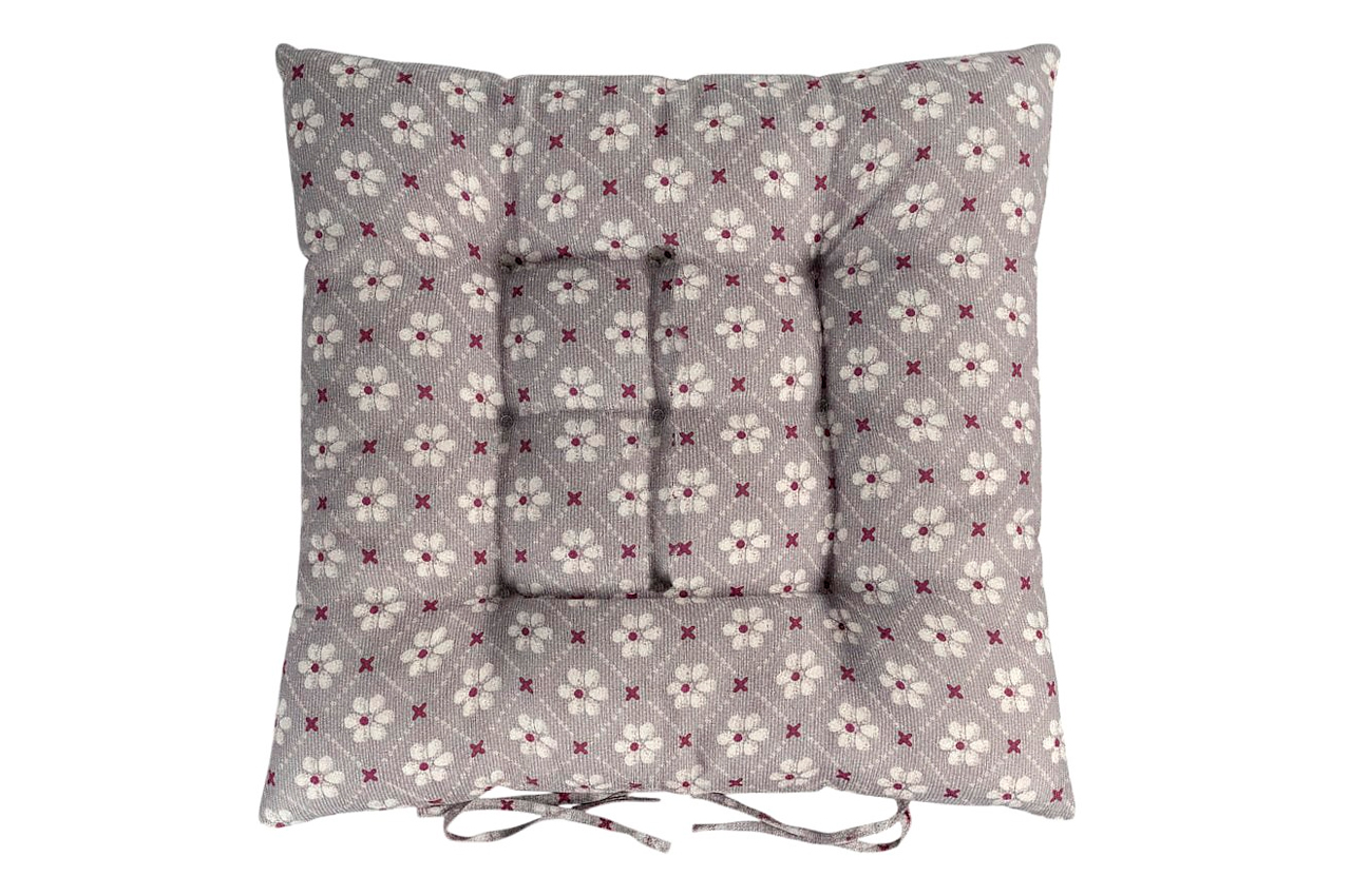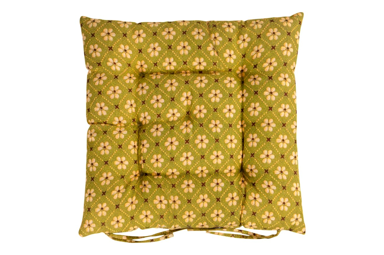 Подушка на стілець "Маленькі квіти", стьобана із зав'язками - 400х400мм