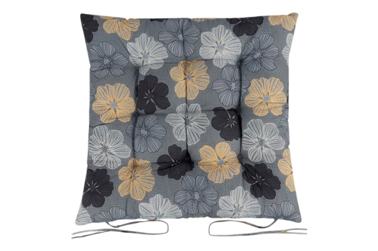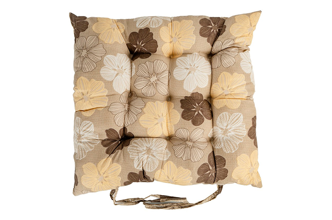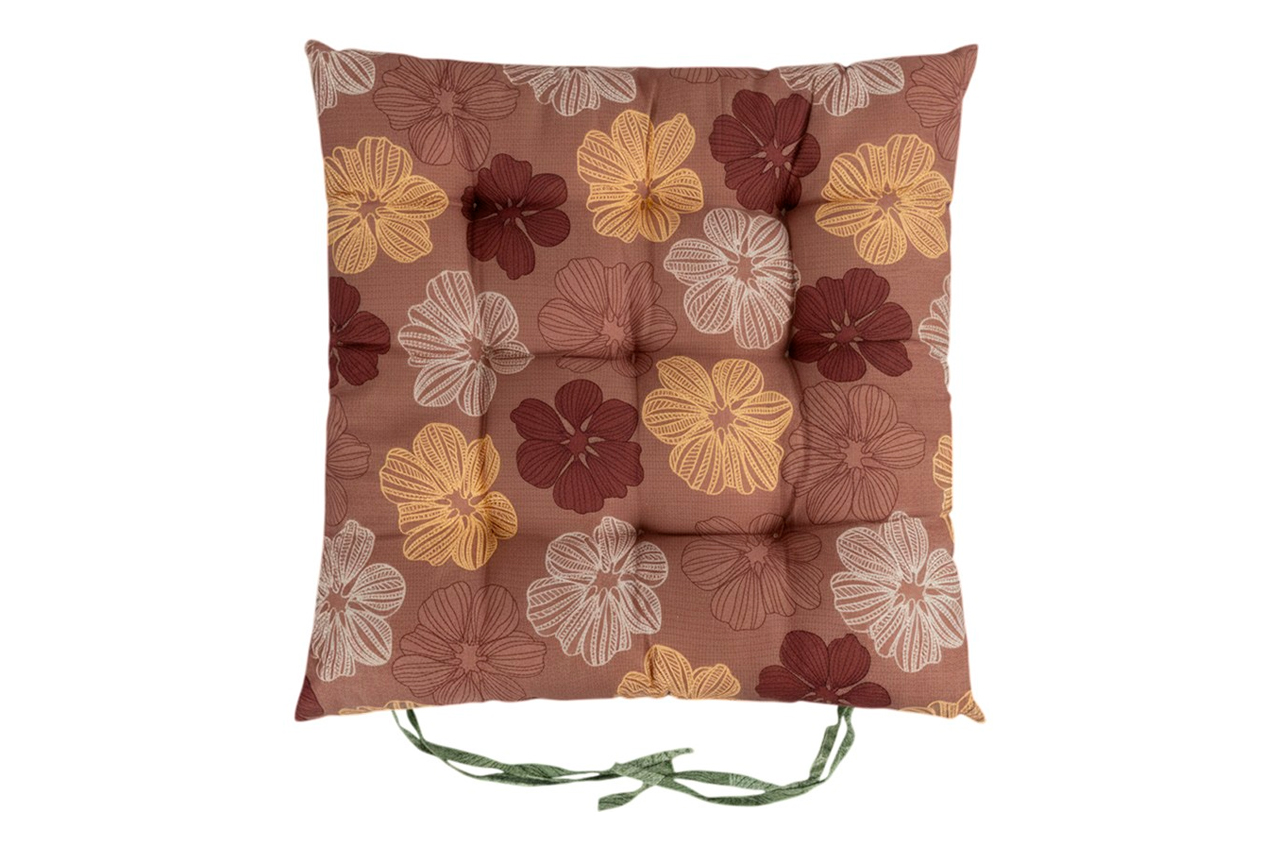 Подушка на стілець "Великі квіти", стьобана із зав'язками - 400х400мм