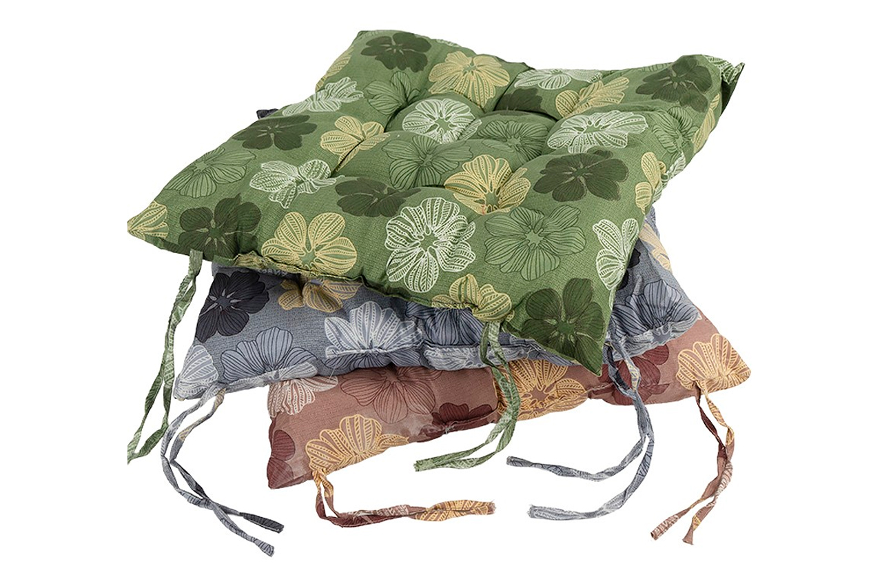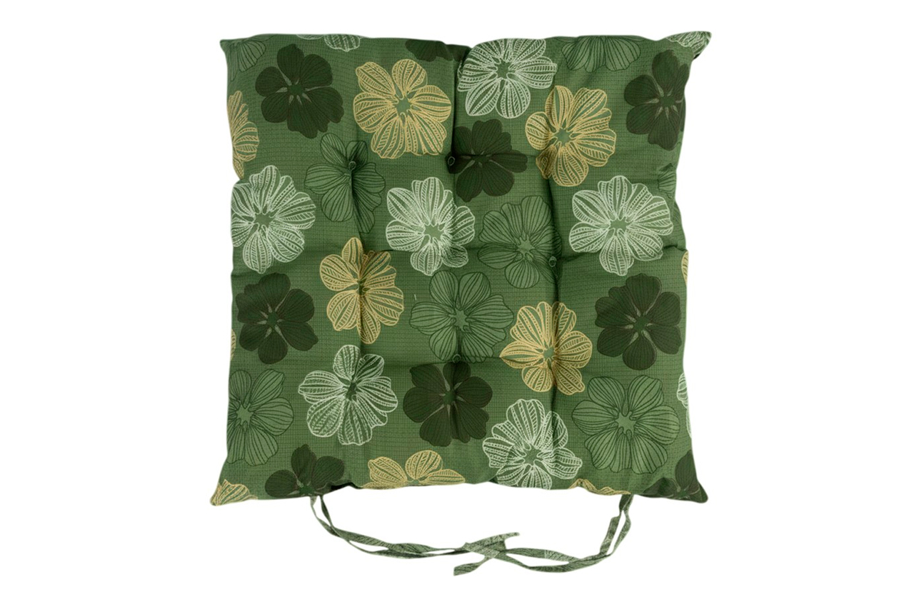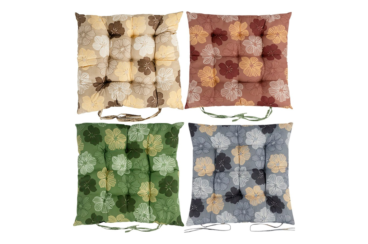 Подушка на стілець "Великі квіти", стьобана із зав'язками - 400х400мм