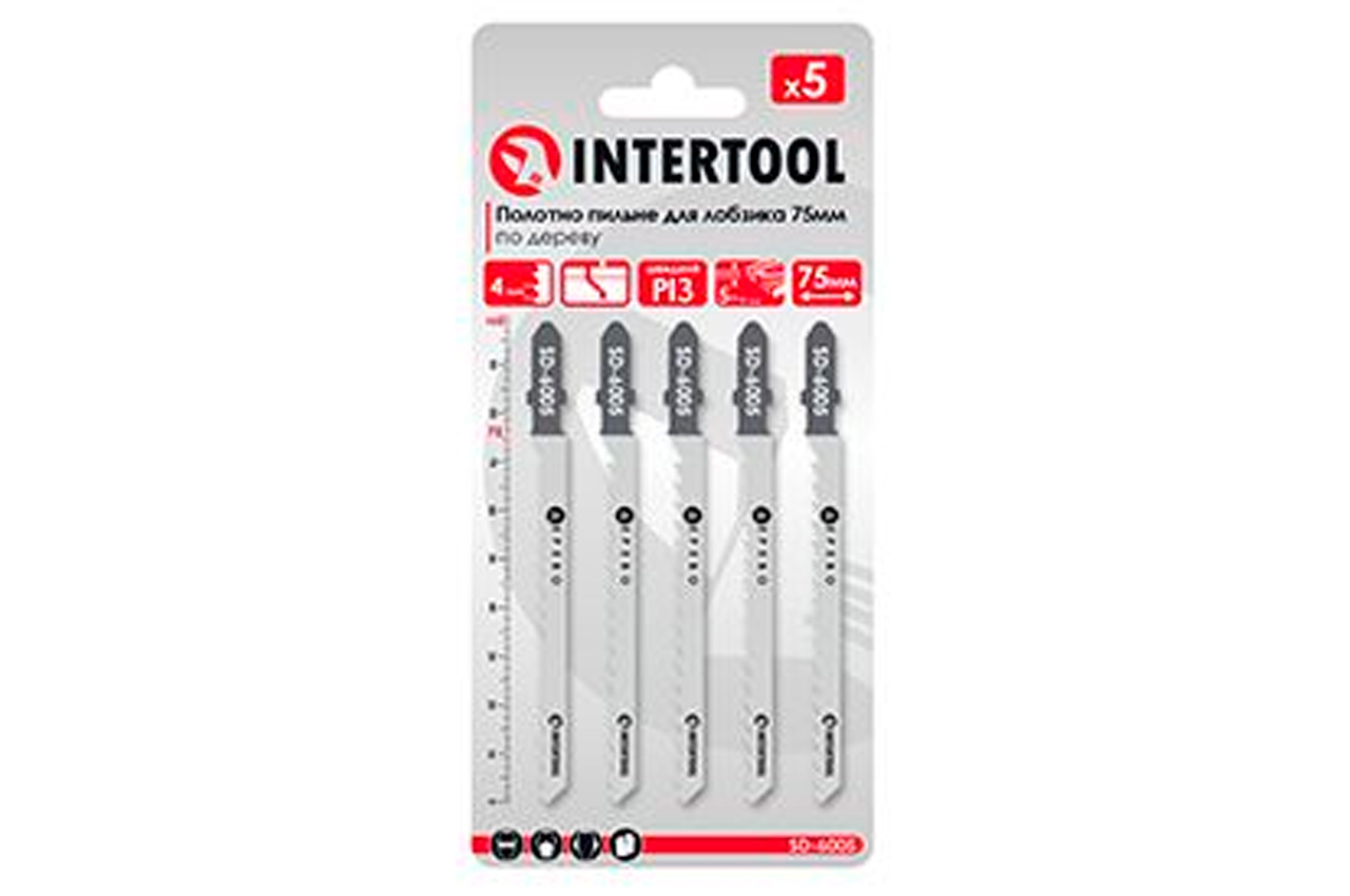 Полотно пильне для лобзика Intertool - 75 х 4 мм дерево (5 шт.) SD-6005