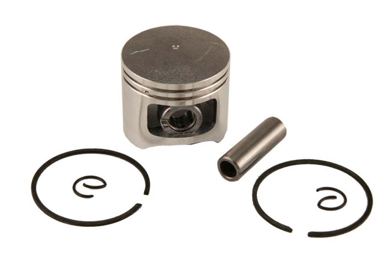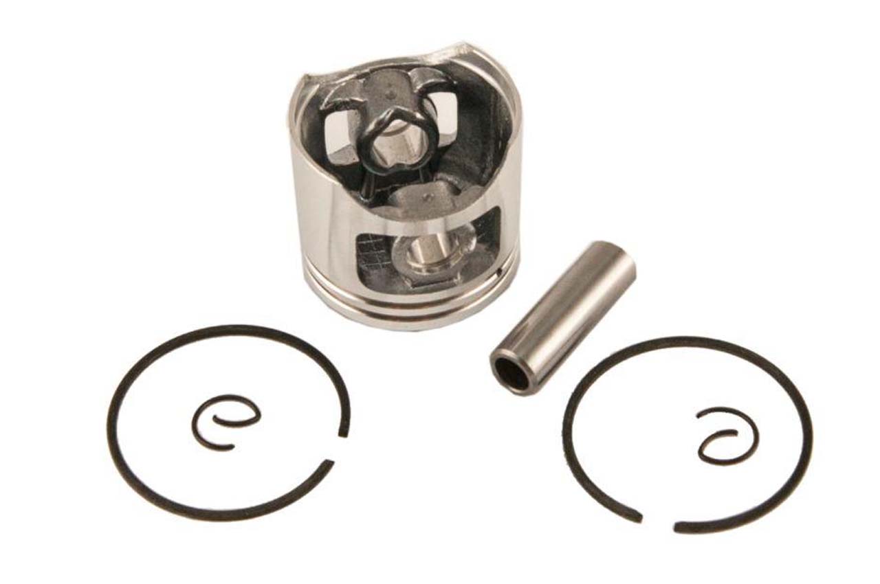 Поршень для моделей: бензопили з діаметром поршня 43 мм. Комплектується поршневими кільцями, пальцем поршня, стопорними кільцями пальця поршня.