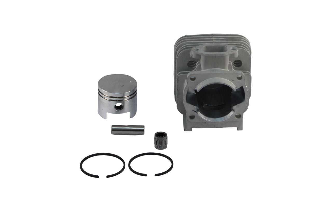 Поршнева для моделей: бензотріммер з діаметром поршня 44 мм. Комплектується циліндром, поршнем, поршневими кільцями, пальцем поршня, стопорними кільцями пальця поршня.