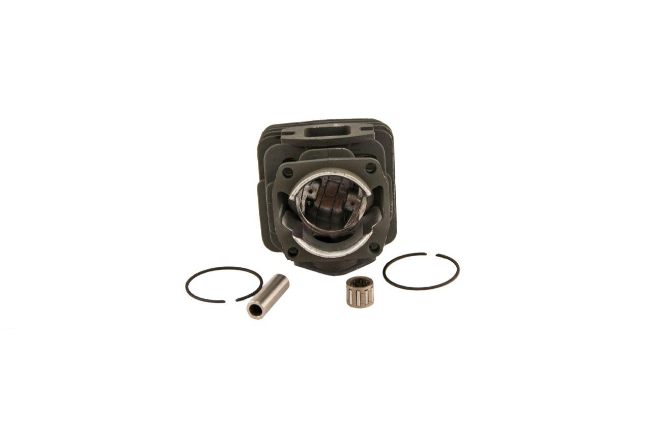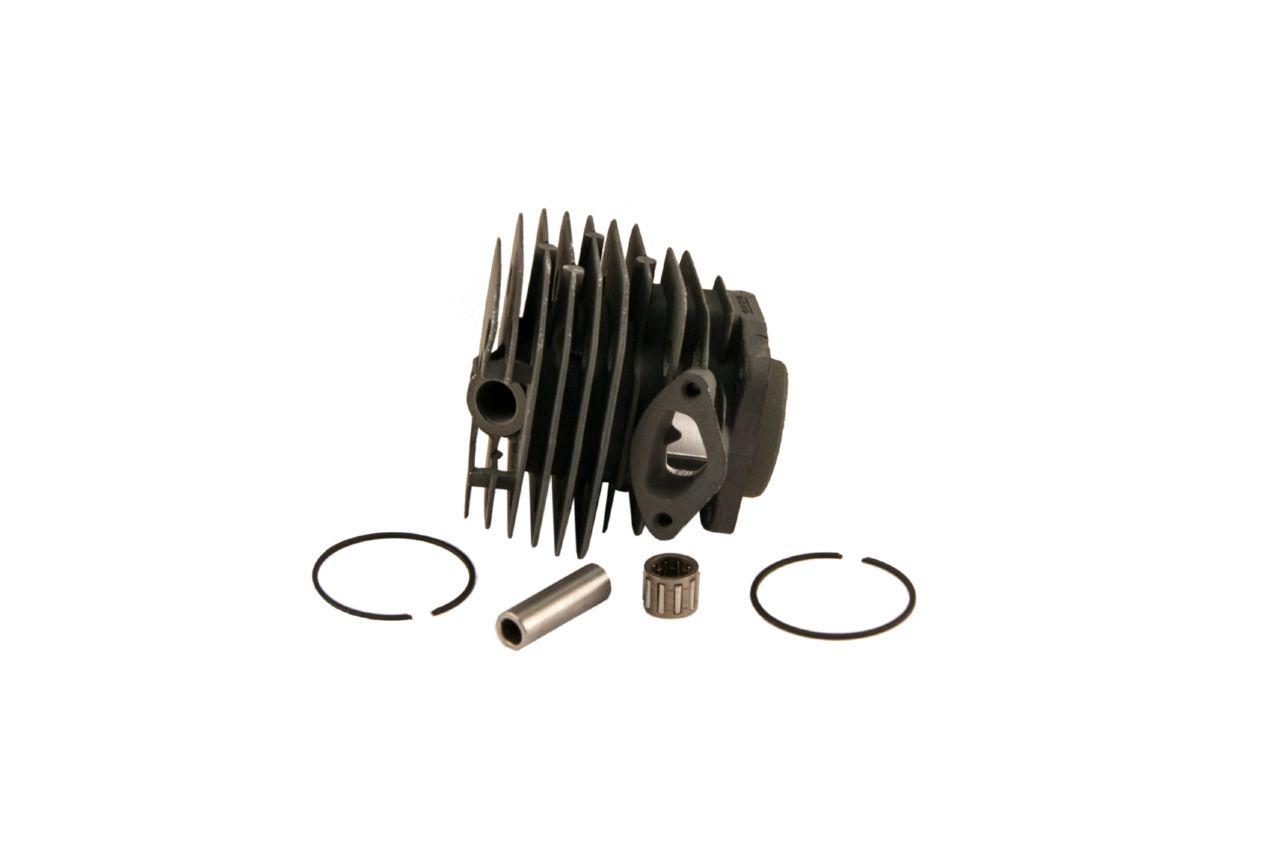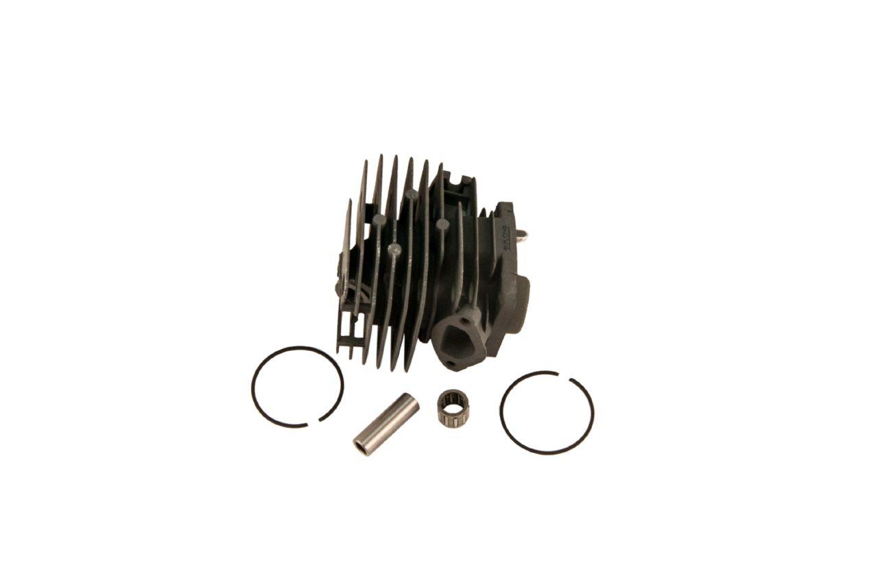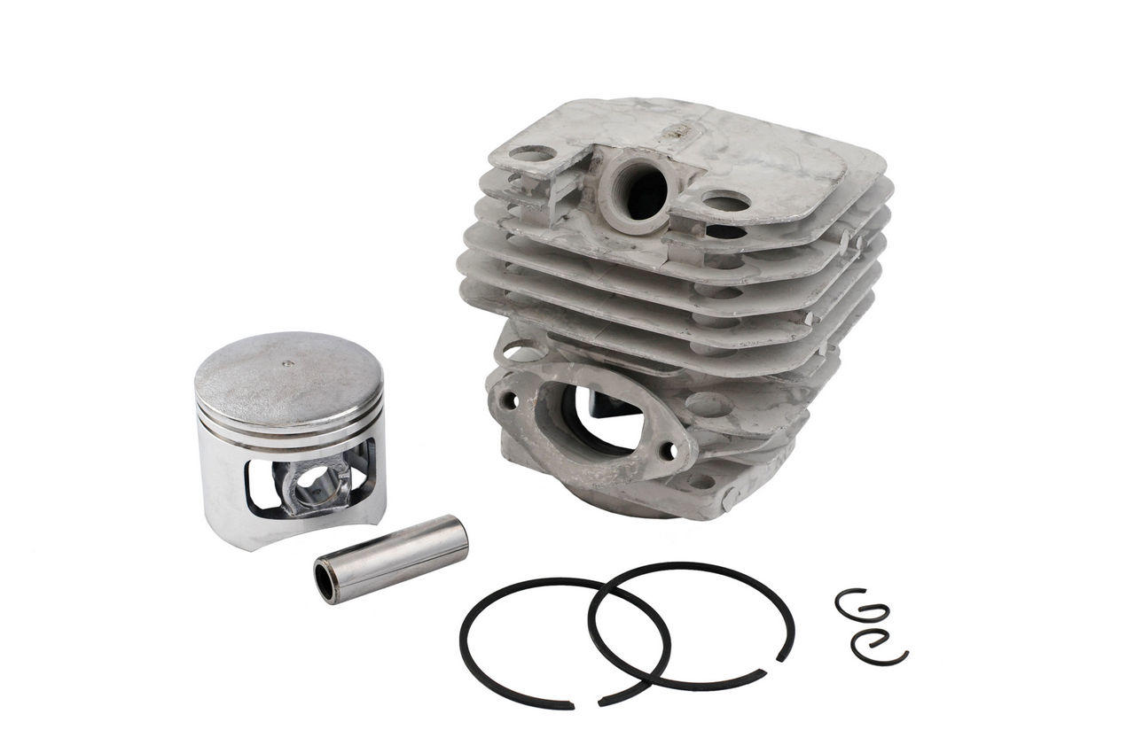 Циліндро-поршнева група це - комплект запчастин, який призначений для заміни циліндра двигуна бензопили. У такий комплект входить: Циліндр і поршень. Виготовлений циліндр з високоміцного і жаростійкого металу. Кріпиться він на 4 болта до другої частини двигуна. А до самого циліндра кріпиться глушник і карбюратор, також в ньому є отвір з різьбленням, в яке вкручується свічка запалювання. Поршень - запчастина, яка поміщається всередину поршневий камери циліндра. Кріпиться поршень на шатун коленвала за допомогою поршневого пальця, який фіксується стопорами. Також на поршень встановлюються два компресійних кільця. Поміщаються ці кільця в спеціально відведені борозни.