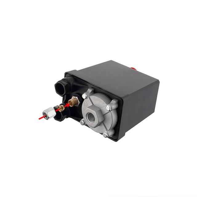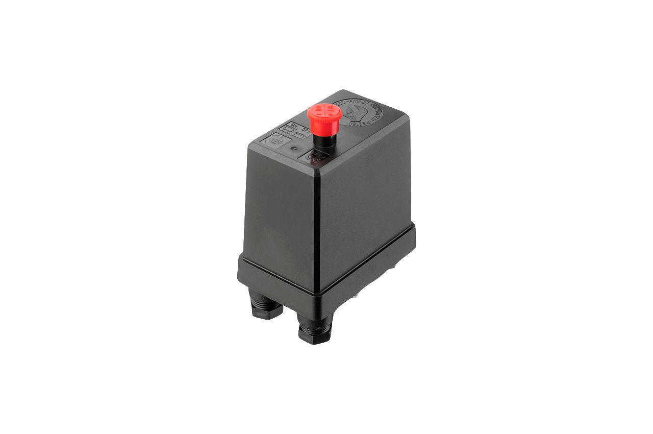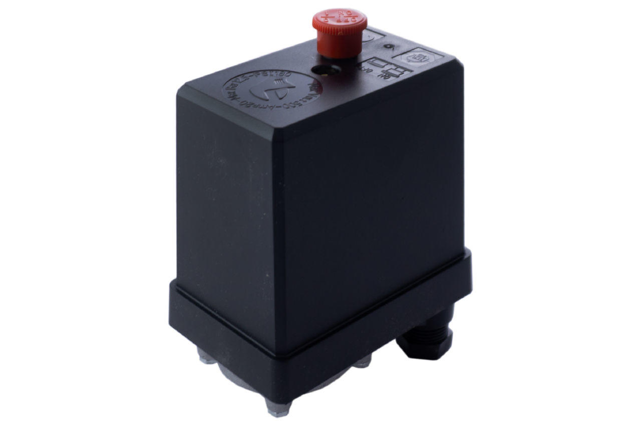 Прессостат або реле тиску (блок управління) призначений для контролю тиску в ресивері компресора за заданими параметрами в автоматичному режимі. Використовується для трифазних повітряних поршневих компресорів з напругою 380В і максимальною потужністю до 3 кВт. Блок автоматики дозволяє здійснювати пуск та зупинку компресора у міру витрати повітря споживачем. Корпус пристрою виконаний з якісного пластику з надійною кнопкою, а мембранно-пружинний механізм забезпечує стабільну та безперебійну роботу: замикає та розмикає ланцюг живлення електродвигуна залежно від робочого тиску. Пристрій легко самостійно встановити на редуктор омпресора і підключити до електродвигуна. Застосовується як заміна існуючого пресостата або для складання нового компресора.