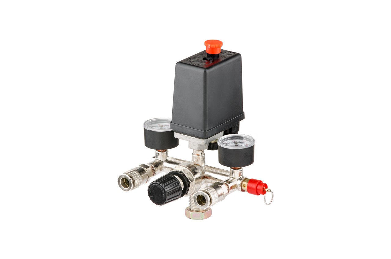 Прессостат - це реле тиску. Він виконує функцію механічного датчика тиску. Пристрій складається з контрольно-розподільного блоку, прессостата і 2 манометрів. Робочий тиск: до 8 атм; Кількість манометрів: 2 од .; Різьба зовнішня: 1/2 "