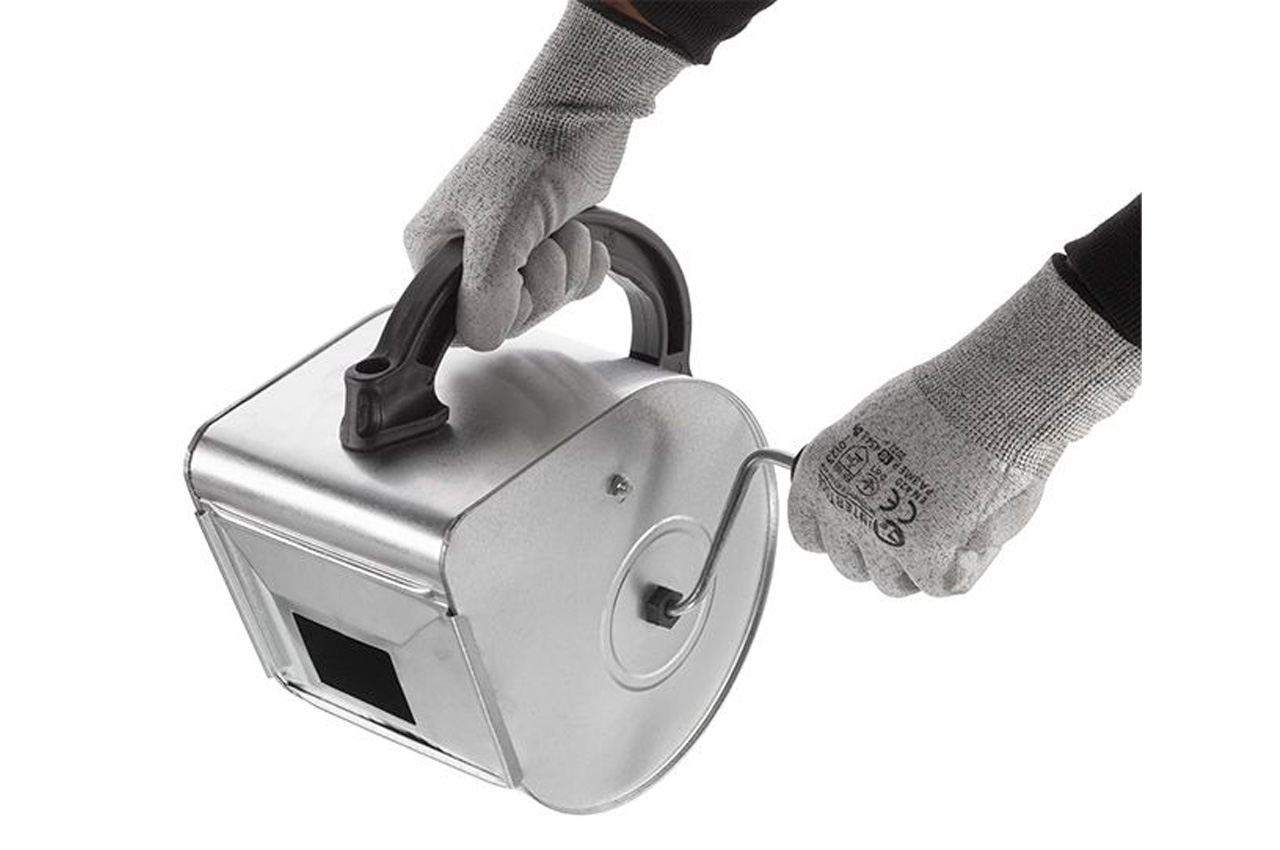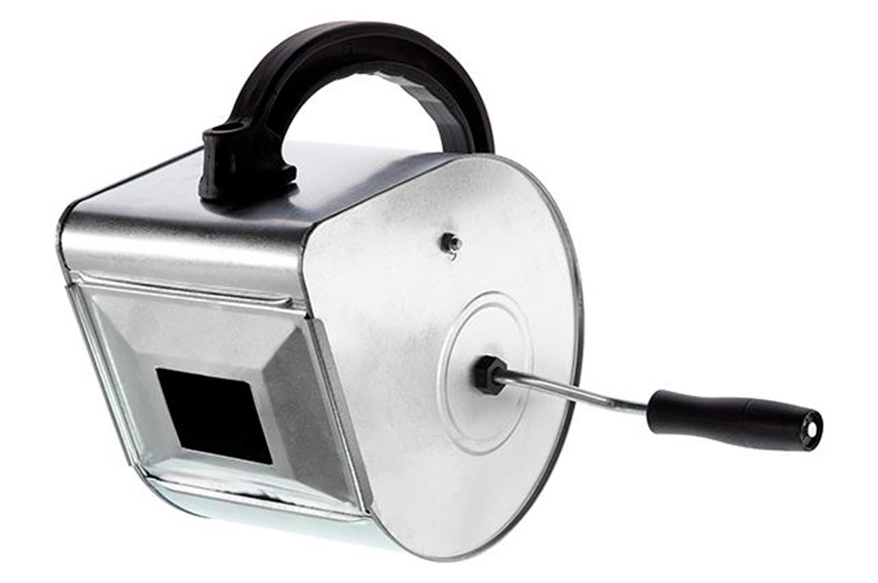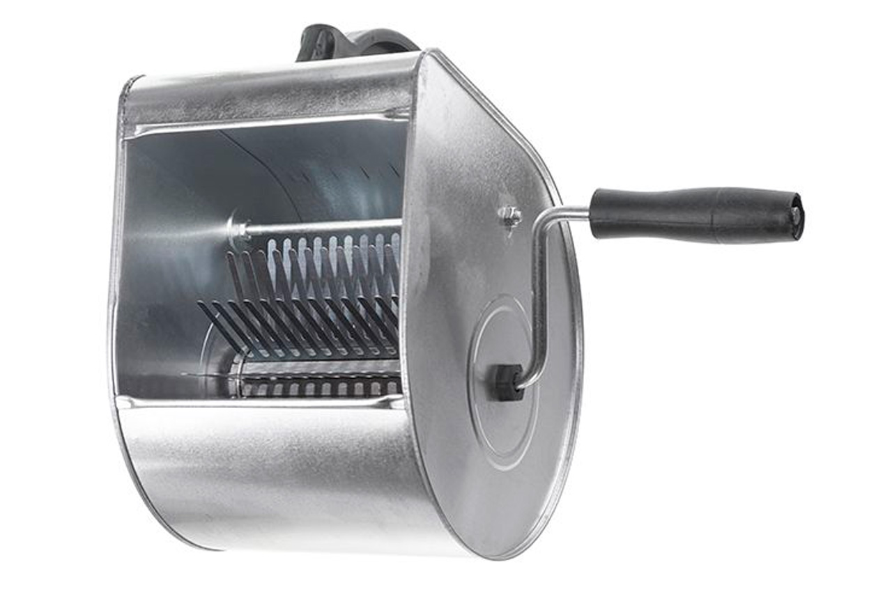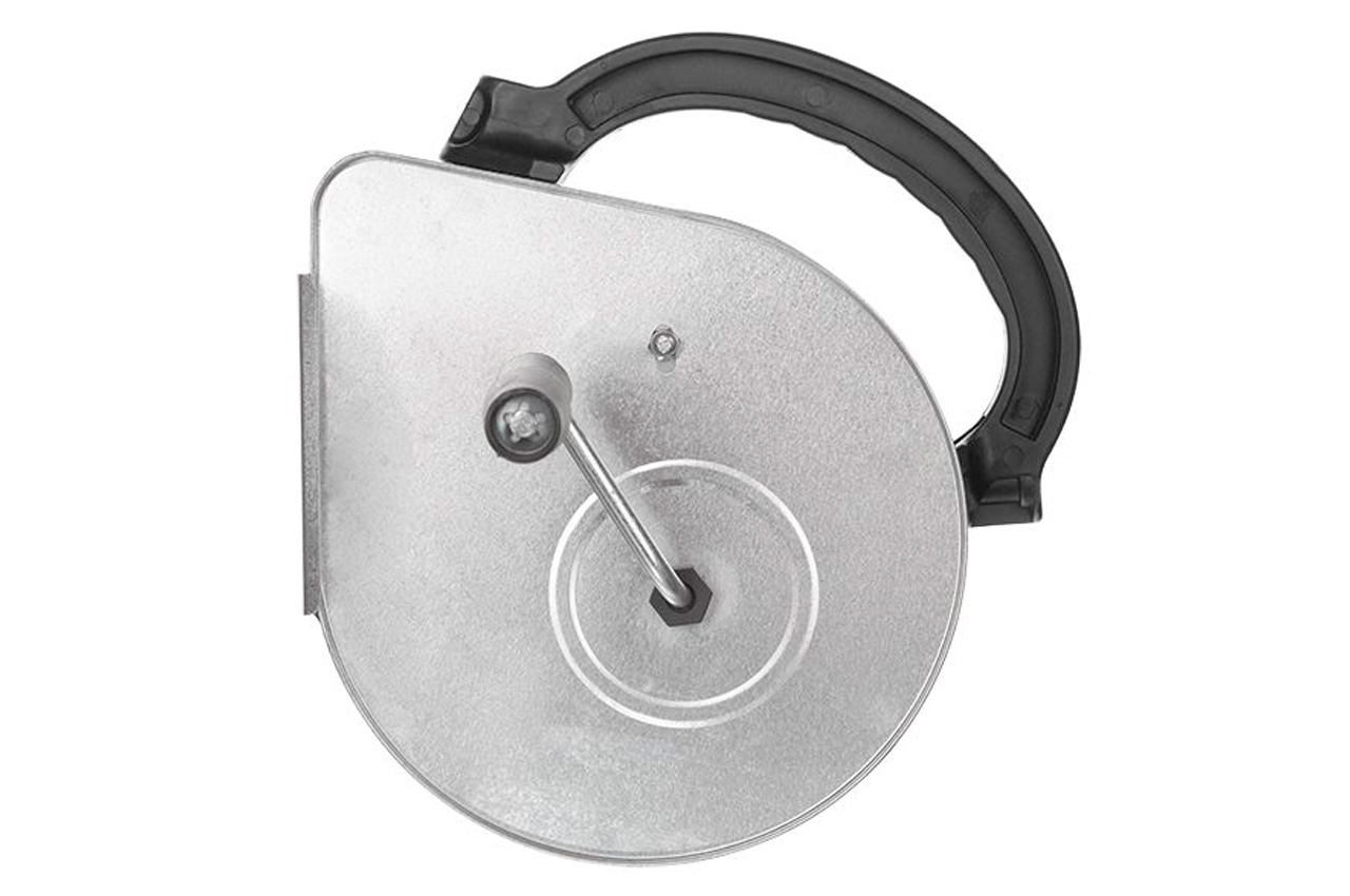 Пристрій для нанесення штукатурки KT-0001 виготовлено з якісного металу, зверху оснащено надійно закріпленої пластиковою ручкою. Обертається бічна ручка, пускає в хід пружинисті гребінки з пластинчастими зубцями, що знаходяться на дні пристрою. По дорозі обертання, зубці наштовхуються на ударний стрижень і відкидають налиплу на них будівельну суміш в розташоване на стінці пристрою отвір. Застосовується для нанесення штукатурки методом "набризга" зовні приміщень. Оброблена таким методом поверхня стає рівною без додаткового розгладження. Перевагою використання пристрою для нанесення штукатурки є економічність витрачання матеріалів і простота використання.