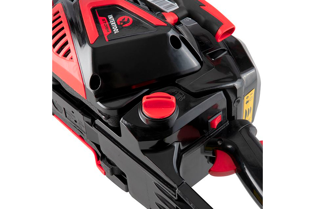 Бензопила серії STORM WT-0640 має підвищений ресурс та ефективно справляється з будь-якими проектами із заготівлі дров. Оснащена двотактним двигуном, потужністю 2,6 кВт, вона відмінно підходить для роботи в саду, на присадибній ділянці, а також буде корисною на будівництві, ідеально підходить для домовласників, майстрів-аматорів, а також професіоналів своєї справи. Двигун з робочим об'ємом циліндра 58 см і зі швидкістю обертання 3200 об/хв забезпечує ефективне розпилювання деревини будь-якого виду, від мокрого дерева і стовбурів великих діаметрів до деревинно-стружкових плит. Шина довжиною 45 см з пиляльним ланцюгом 18”, кроком 0,325”, кількістю ланок 72 од., товщиною ланки 1,5 мм, має високі характеристики міцності та підходить для твердих порід деревини.