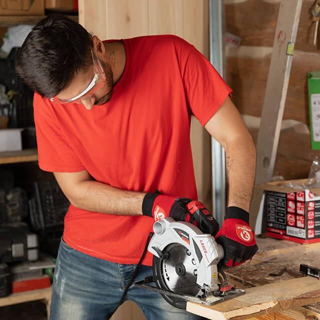 Дискова пилка WT-0623 дозволяє виробляти швидке розпилювання деревини і відмінно справляється з великими обсягами роботи за допомогою пиляльного диска діаметром 235 мм. Широко застосовується під час будівельних робіт, на меблевих виробництвах, столярних майстернях, а також у побутових умовах. Максимальна ефективність та надійність Двигун потужністю 2000 Вт та висока частота обертань (5000 об/хв) дозволяють легко справлятися з твердими породами деревини. Високоточне складання інструменту з якісних та зносостійких комплектуючих роблять його вірним помічником на довгі роки. Безпека та зручність у роботі Безпека при роботі з пилкою забезпечується кожухом, що автоматично закривається, що виключає випадковий контакт пальців з ріжучим диском. Розташована на ручці кнопка блокування вимикача захищає від випадкового запуску двигуна. Система плавного пуску дозволяє поступово набирати максимальне обертання та виключає ривки інструменту. Ергономічний дизайн та зручні рукоятки з рифленими поверхнями роблять роботу більш комфортною, а прогумоване покриття основної ручки гасить зайві вібрації. Прогумований провід довжиною 3 метри дозволяє працювати пилкою без подовжувача на достатній відстані від розетки. Світловий індикатор на рукояті завжди повідомляє, чи підключений інструмент до електромережі. Точність та чистота Можливість регулювання кута та глибини різу щодо опорної плити, а також наявність лазерної лінійки, дозволяють виконувати поставлені завдання максимально точно та акуратно. Пила здійснює пропили глибиною до 85 мм під кутом 90°, і до 56 мм під кутом 45°. У кожусі диска передбачено отвір для виведення стружки. До нього можна підключити пилозбірний мішок або пилосос, щоб робоче місце завжди залишалося у чистоті. Спробувавши дискову пилку WT-0623 у справі, ви здивуєтеся наскільки вона ефективна!