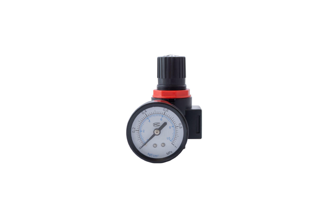 Компактний регулятор з пропускною спроможністю до 1800 л / хв. Легко встановлюється на вертикальні поверхні. Кріплення в комплекті. Регулятор має замок-фіксатор. Для регулювання тиску необхідно підняти регулятор вгору, для фіксації - опустити вниз до клацання. Комплектується високоточним манометром з металевим корпусом. Різьблення: 1/2 "; Робочий тиск: 0,5-8 бар; Максимальний тиск: 10 бар