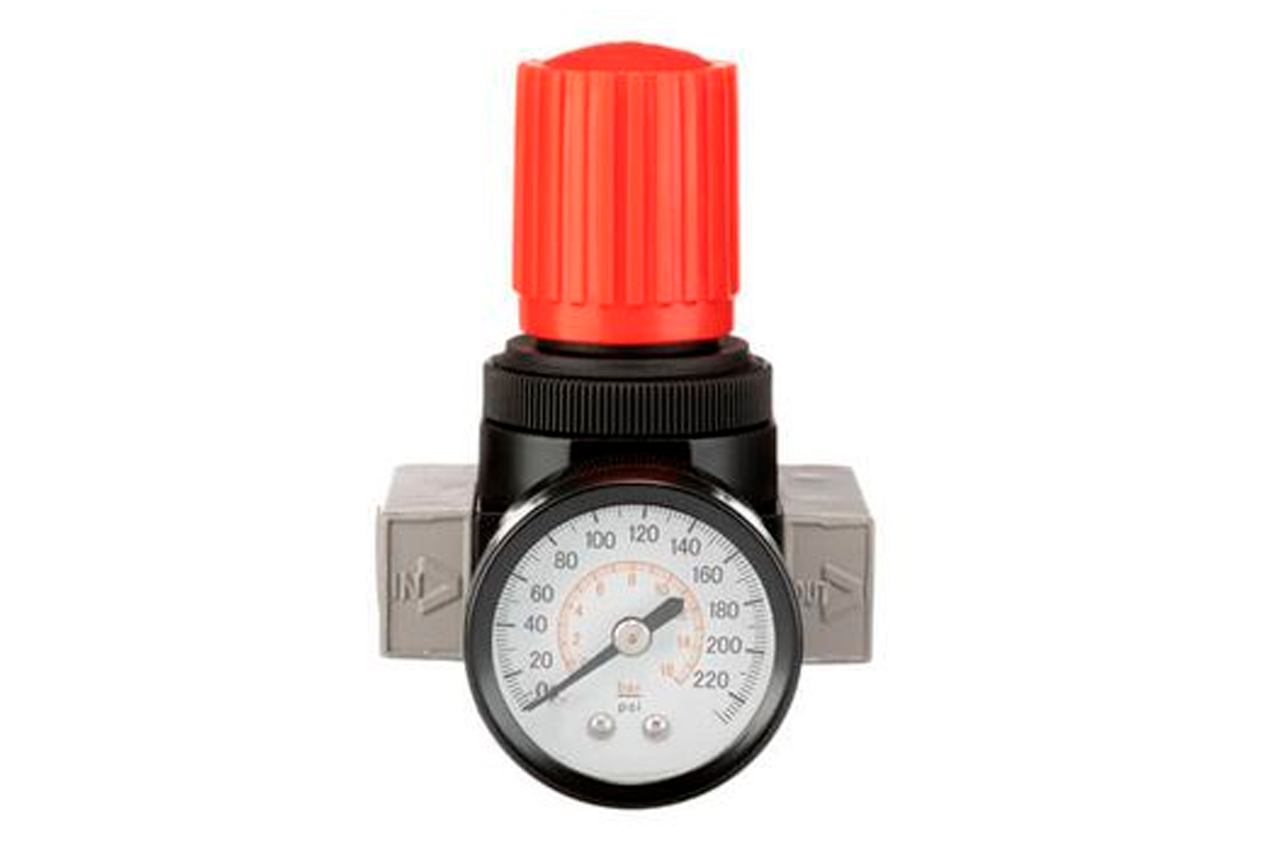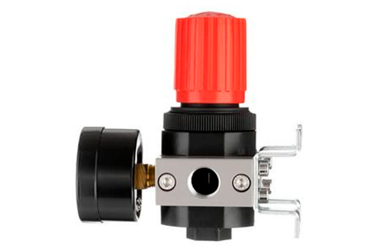 Регулятор тиску дозволяє швидко налаштувати необхідний робочий тиск в повітряній магістралі і підтримує його з постійним значенням. Корпус редуктора виготовлений з міцного металу високої якості який не піддається корозії, що гарантує довгий термін служби і високу експлуатаційне тиск. Манометр з точною подвійною шкалою PSI, bar в металевому корпусі, з максимальним значенням 16 бар. Може бути встановлений з двох сторін редуктора при необхідності. Ви легко поверніть регулятор в потрібному положенні - на корпусі розміщені покажчики напрямку руху повітря. Редуктор встановлюють якомога ближче до споживача повітря або безпосередньо на виході з компресора. У комплекті поставляється кріплення для монтажу на вертикальні поверхні. Має 2 внутрішні різьблення для підключення, діаметром 1/4 ". У комплект не включені перехідники. Діаметр різьби: 1/4 "; Пропускна здатність: 1600 л / хв; Робочий тиск: 1-16 бар; Робоча температура: від -10 до +50 ° С