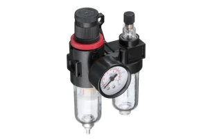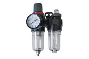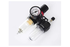 Блок підготовки повітря з редуктором необхідний для безперебійної роботи пневмоінструменту і обладнання. Вберігає ваш інструмент від забруднення, передчасного зносу і продовжує термін служби. Включає в себе фільтр з редуктором і лубрикатор. Фільтр очищає повітря з компресора від вологи, забрудненого масла, пилу та інших дрібних частинок, а так же домішок. Рівень фільтрації 5 мікрон, фільтрація повітря дворівнева: за допомогою відцентрової сили і через фільтруючий елемент, який виготовлений з синтетичного волокна. За допомогою встановленого редуктора, ви можете легко виставити необхідний тиск в магістралі. Манометр з точною подвійною шкалою PSI, bar в металевому корпусі, з максимальним значенням 16 бар. Може бути встановлений з двох сторін фільтра при необхідності. Лубрикатор необхідний для стабільної роботи інструментів, обладнання, циліндрів і клапанів, для яких потрібно подача повітря з мастилом. Забезпечує безперервну і регульовану подачу масла, розпорошуючи його і доставляючи до споживача разом зі стисненим повітрям. Рекомендоване масло для заливки: тип VG32 згідно DIN51517-ISOVG32 або аналогічне. Корпус блоку підготовки виконаний з міцного металу високої якості який не піддається корозії, що гарантує довгий термін служби і високу експлуатаційне тиск. У комплекті з блоком підготовки повітря поставляється кріплення для монтажу на вертикальні поверхні. Особливості Повна підготовка повітря в пневмосистеме; Фільтруючий елемент виготовлений з синтетичного волокна; Тонка фільтрація 5мкм; Автоматичний і ручний дренаж; Простий у використанні лубрикатор; Міцний суцільнометалевий корпус для захисту колб; Металеві кріплення для установки на вертикальні поверхні. Рекомендується встановлювати блок підготовки повітря якомога ближче до споживача повітря або безпосередньо на виході з компресора. У комплект не включені перехідники. Має 2 внутрішні різьблення для підключення, діаметром 1/4 ". Матеріал фільтра: синтетичне волокно; Рівень фільтрації: 5 мкм; Пропускна здатність: до 850 л / хв; Робочий тиск: 1-10, макс.16 бар; Робоча температура: від -10 до +50 ° С; Діаметр різьби: 1/4 " Пропускна здатність: до 850 л / хв; Робочий тиск: 1-10, макс.16 бар; Робоча температура: від -10 до +50 ° С; Діаметр різьби: 1/4 " Пропускна здатність: до 850 л / хв;