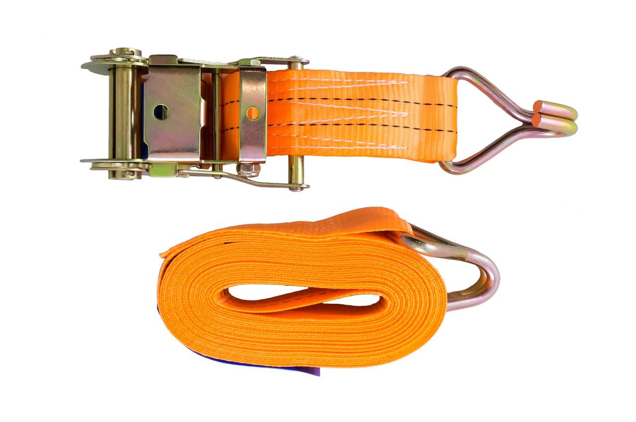 Ремені стягнуті (стягнуті вантажні ремені, стяжки, ремені кріплення, Ретчет) використовують для ефективного кріплення вантажів на транспорті. Легкість в застосуванні робить їх незамінними при транспортуванні вантажів. Ремінь надійно закріплює вантаж на транспортному засобі, не травмуючи його при упаковці, і повністю зберігаючи товарний вигляд перевезених виробів. У конструкції ременя є натягач (храповий замок), який запобігає ослабленню стрічки, яка закріплює вантаж, під час руху транспорту, що забезпечує безпеку учасників руху і схоронність перевезених товарів. Сама стяжна стрічка виготовляється з поліефірних волокон, вона стійка до стирання, до різного атмосферного впливу, з неї легко видаляється бруд. Поліестерові ремені з легкістю витримують перепади температур від -40 ºС до +120 ºС Матеріал рукоятки: метал; Стяжні зусилля: 2000кг; Ширина троса: 50мм