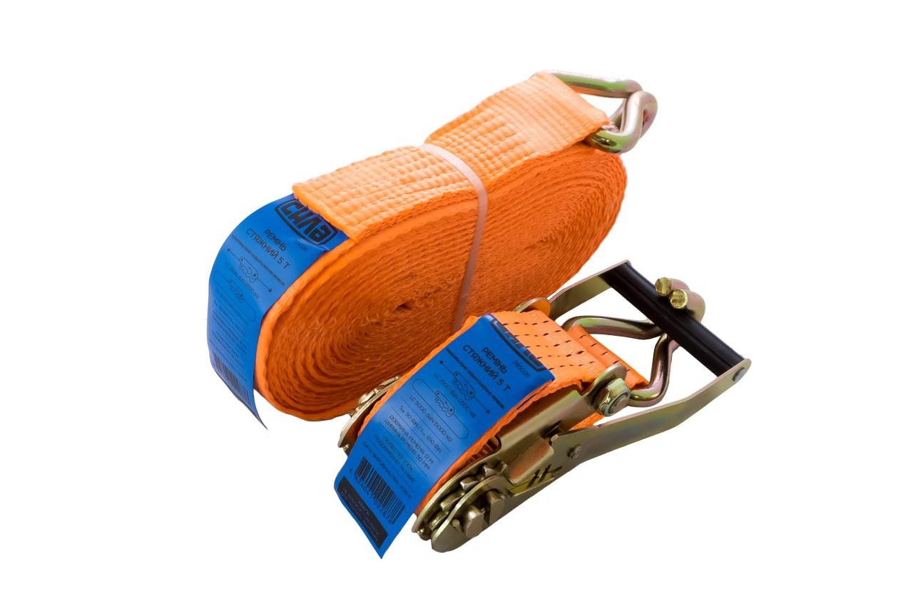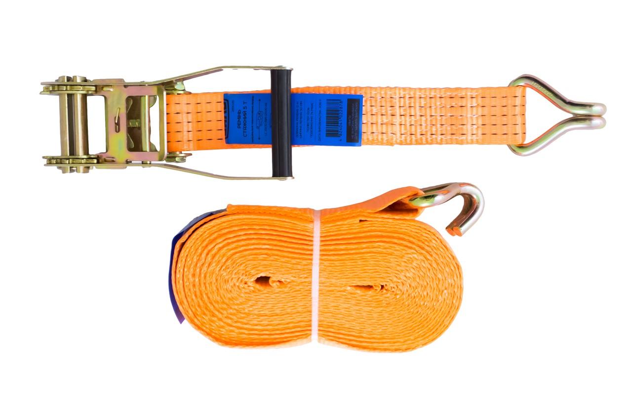 Ремені стягнуті (стягнуті вантажні ремені, стяжки, ремені кріплення, Ретчет) використовують для ефективного кріплення вантажів на транспорті. Легкість в застосуванні робить їх незамінними при транспортуванні вантажів. Ремінь надійно закріплює вантаж на транспортному засобі, не травмуючи його при упаковці, і повністю зберігаючи товарний вигляд перевезених виробів. У конструкції ременя є натягач (храповий замок), який запобігає ослабленню стрічки, яка закріплює вантаж, під час руху транспорту, що забезпечує безпеку учасників руху і схоронність перевезених товарів. Сама стяжна стрічка виготовляється з поліефірних волокон, вона стійка до стирання, до різного атмосферного впливу, з неї легко видаляється бруд. Поліестерові ремені з легкістю витримують перепади температур від -40 ºС до +120 ºС Матеріал рукоятки: пластик; Стяжні зусилля: 3000кг; Ширина троса: 50мм