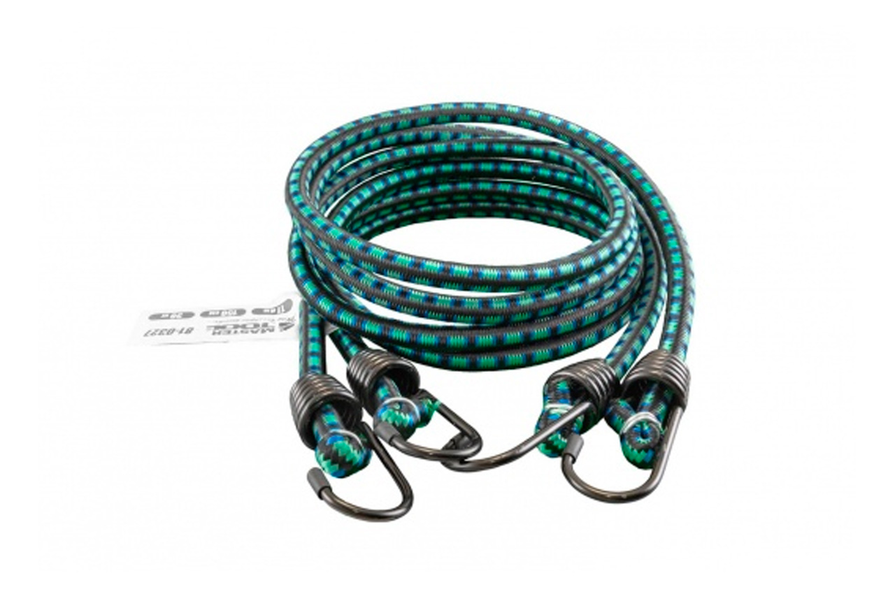 Резинки багажні Mastertool - призначені для фіксації вантажів під час транспортування. Використовуються в автомобілях, велосипедах, скутерах, мотоциклах, сумках-візках, тачках тощо. Довжина 1500 мм. Діаметр 11 мм.